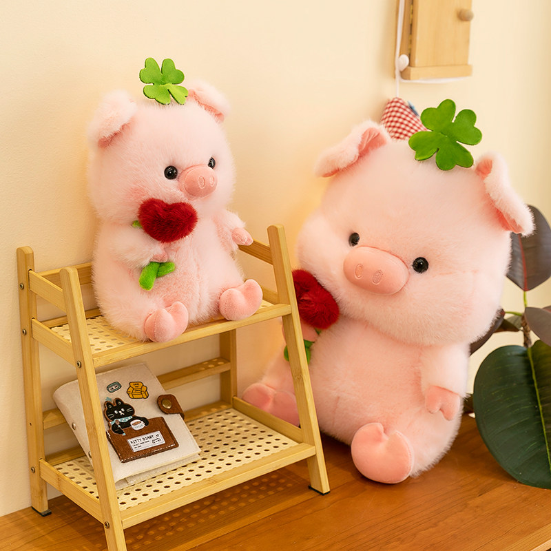 可爱卡通抱花猪毛绒玩具公仔少女心睡觉抱枕安抚布娃娃儿童礼物