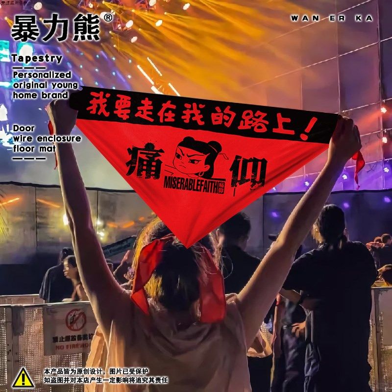 音乐节乐队周边痛仰乐队痛仰乐n队方巾哪吒面巾红色三角巾嘻哈演