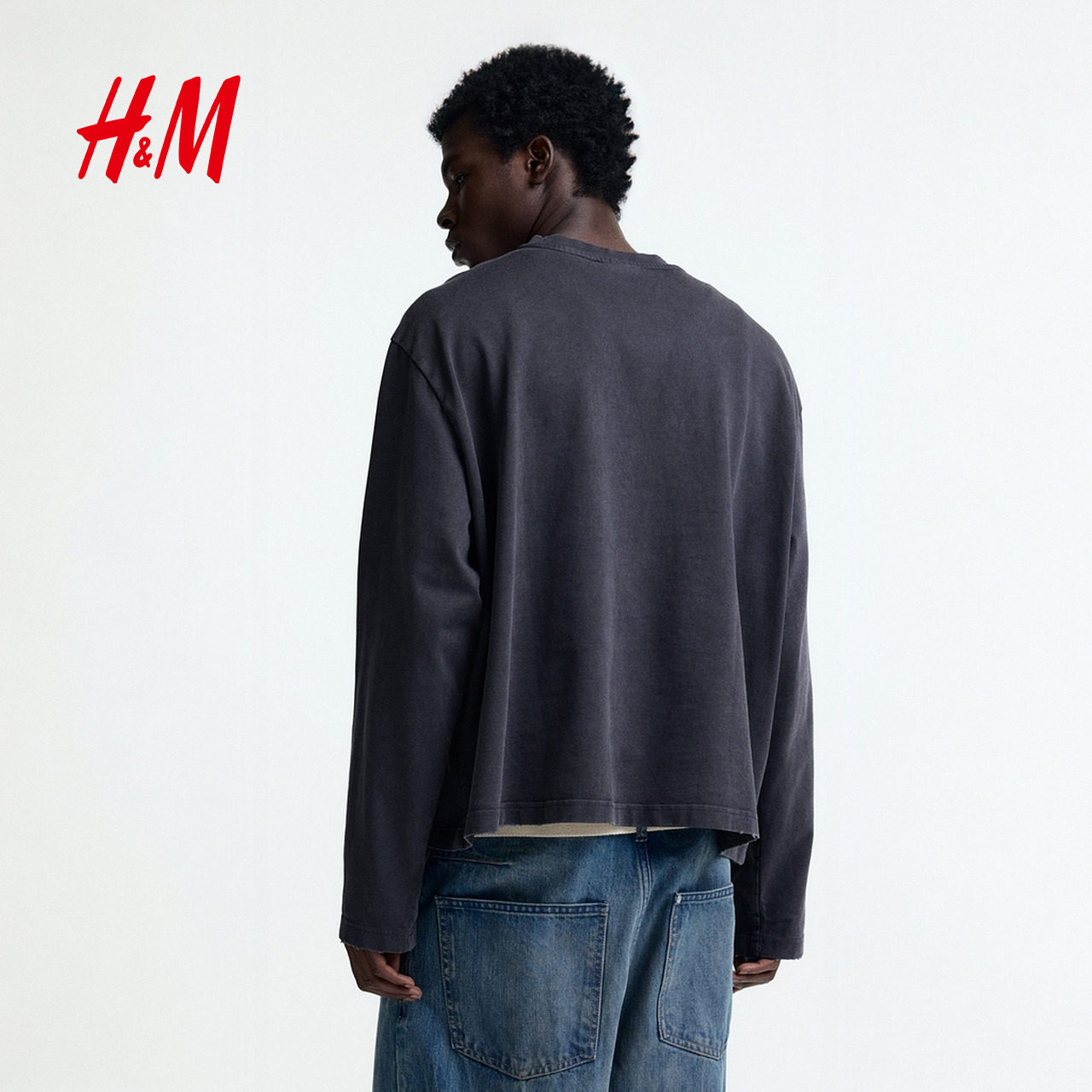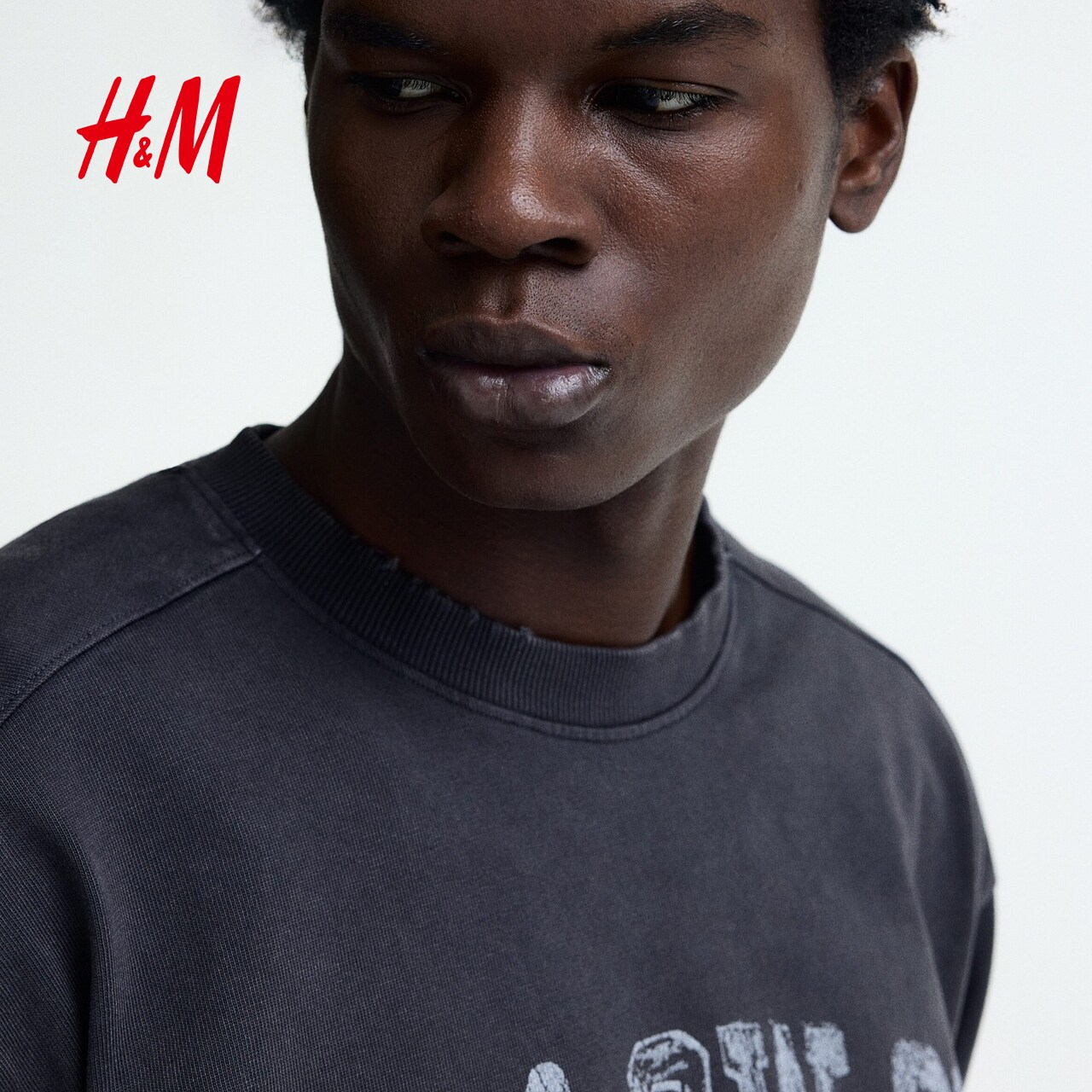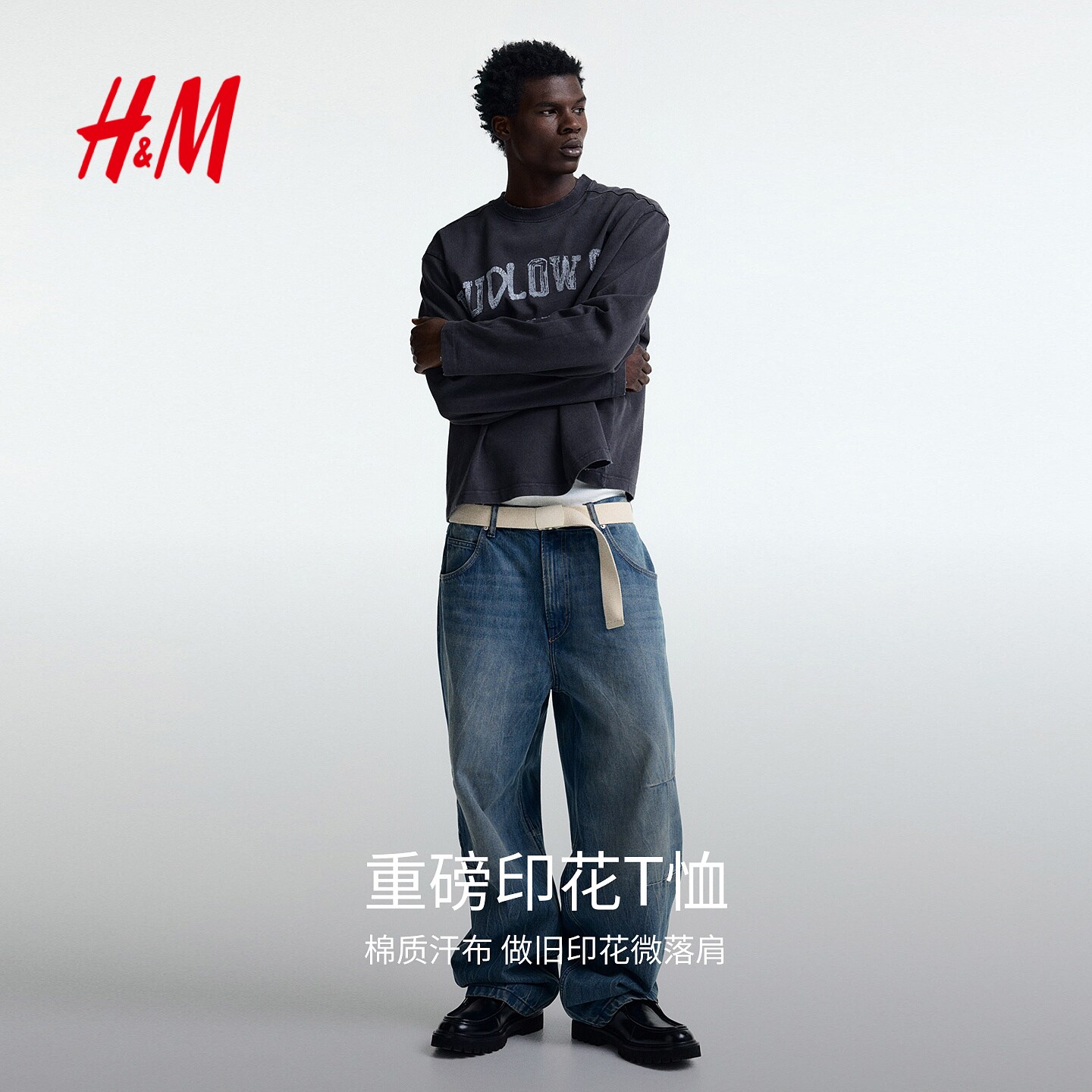 HM男装女装T恤2026春季新款大廓形美式宽松印花汗布重磅1306614