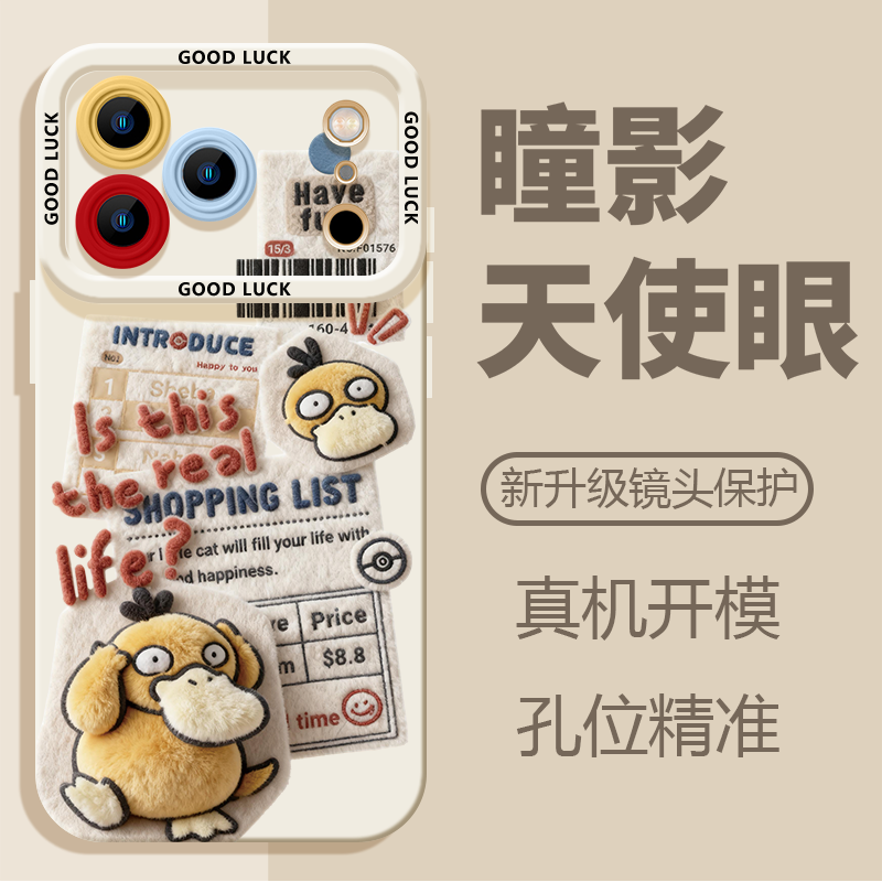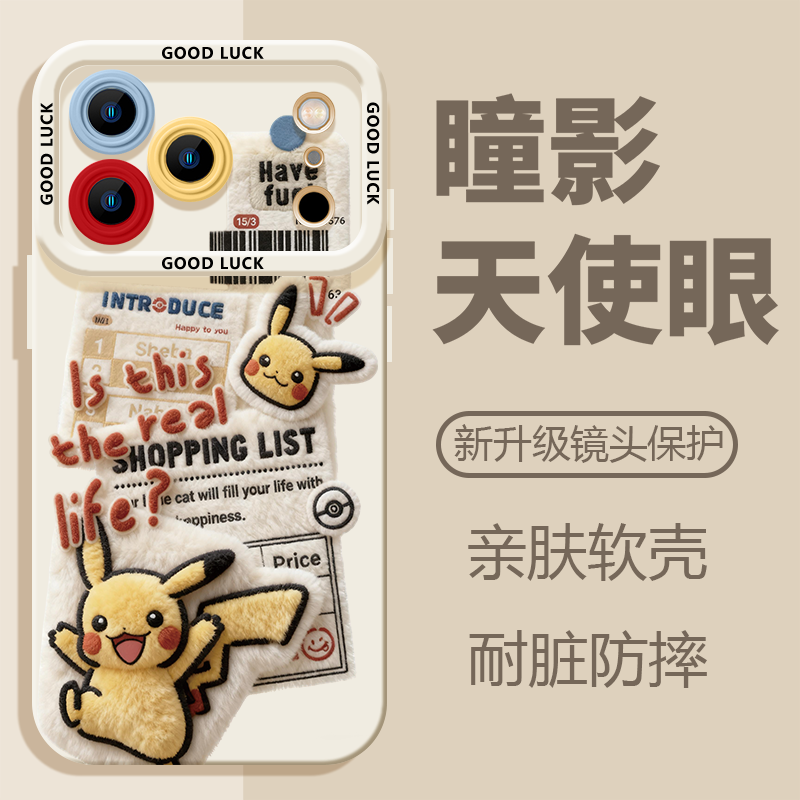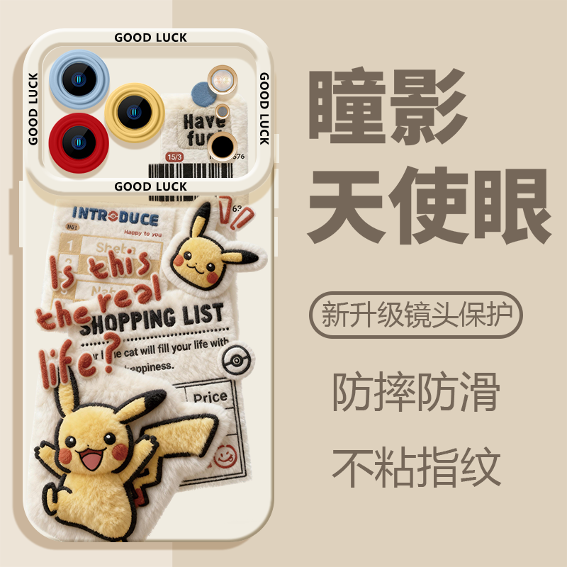 神奇宝贝苹果17ProMax手机壳iPhone16仿毛绒15Plus报纸14标签13秋冬氛围感12卡通11宝可梦xr可达鸭皮卡丘耿鬼