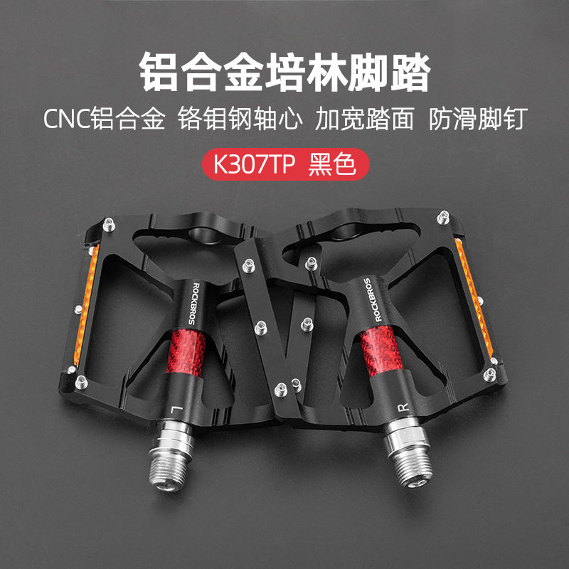 洛克兄弟山地车脚踏自行车脚踏板培林防滑铝合金骑行反光脚蹬单车