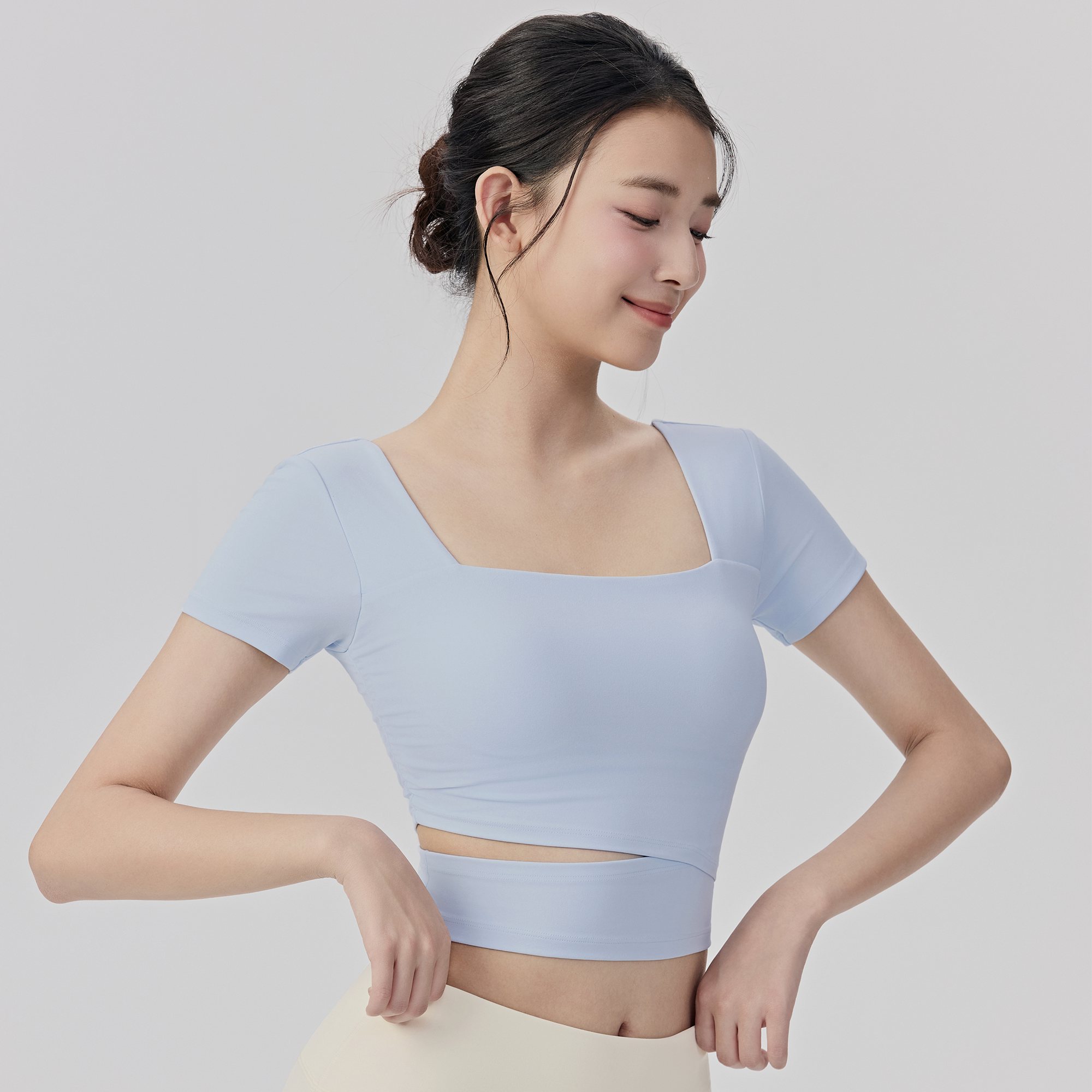 带胸垫瑜伽服女普拉提训练健身上衣2025新款运动跑步套装短袖T恤
