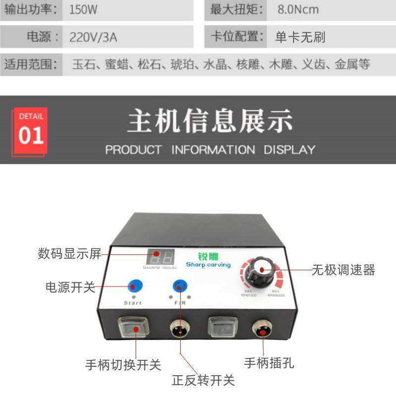 锐雕大力王雕刻机9万转无刷电子机金属玉雕翡翠核雕木雕打磨牙机