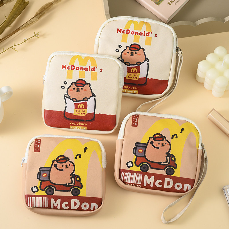 M记卡皮巴拉大容量收纳包便携学生零钱包钱袋口红化妆包女随身