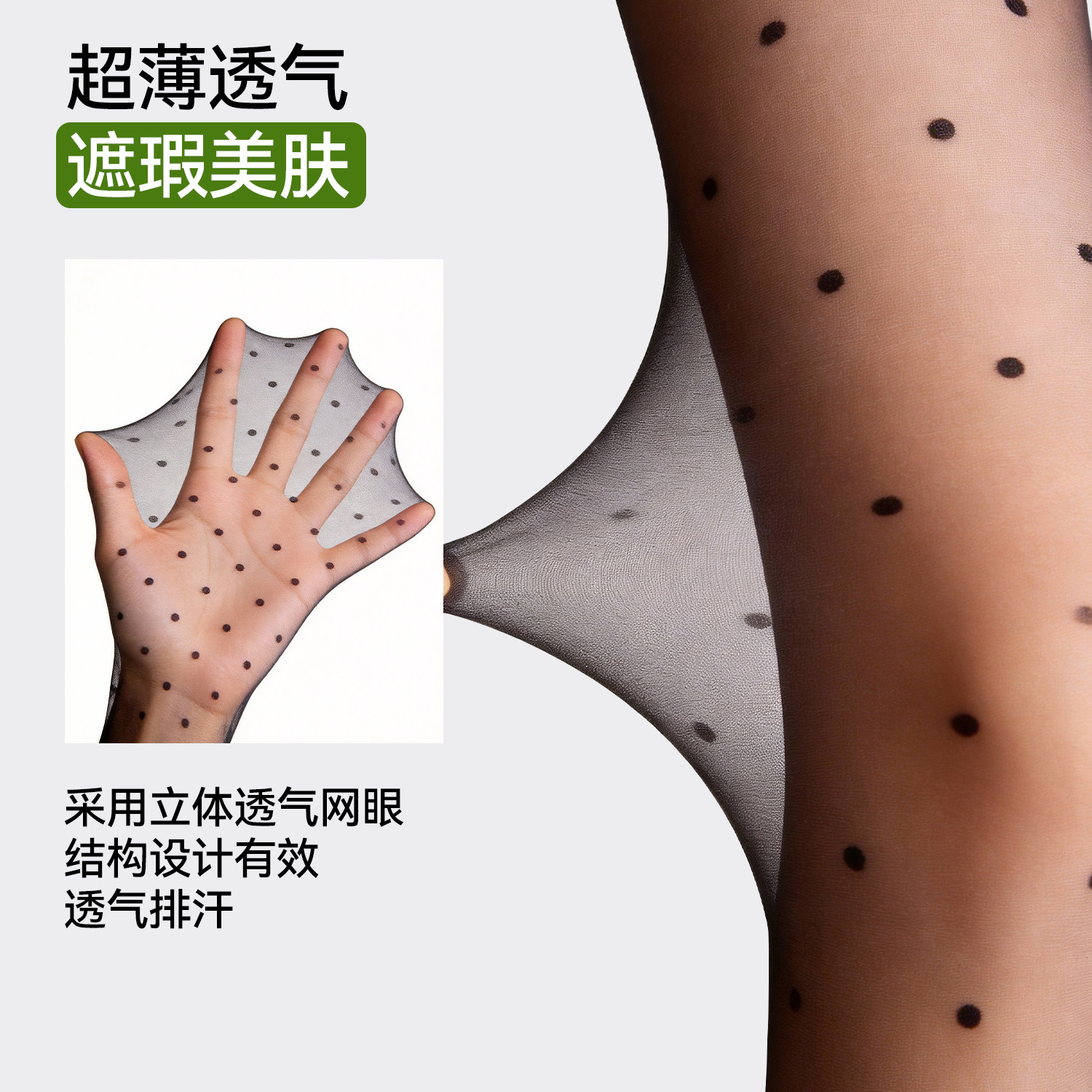 都市丽人夏季薄款波点黑丝女士性感防勾丝自然裸感遮瑕美肤连裤袜