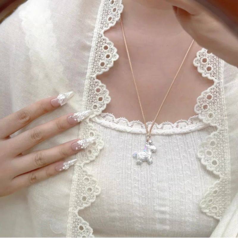 新款小马珐琅彩卡通实心马上有钱毛衣链新长款项链女吊坠配饰女