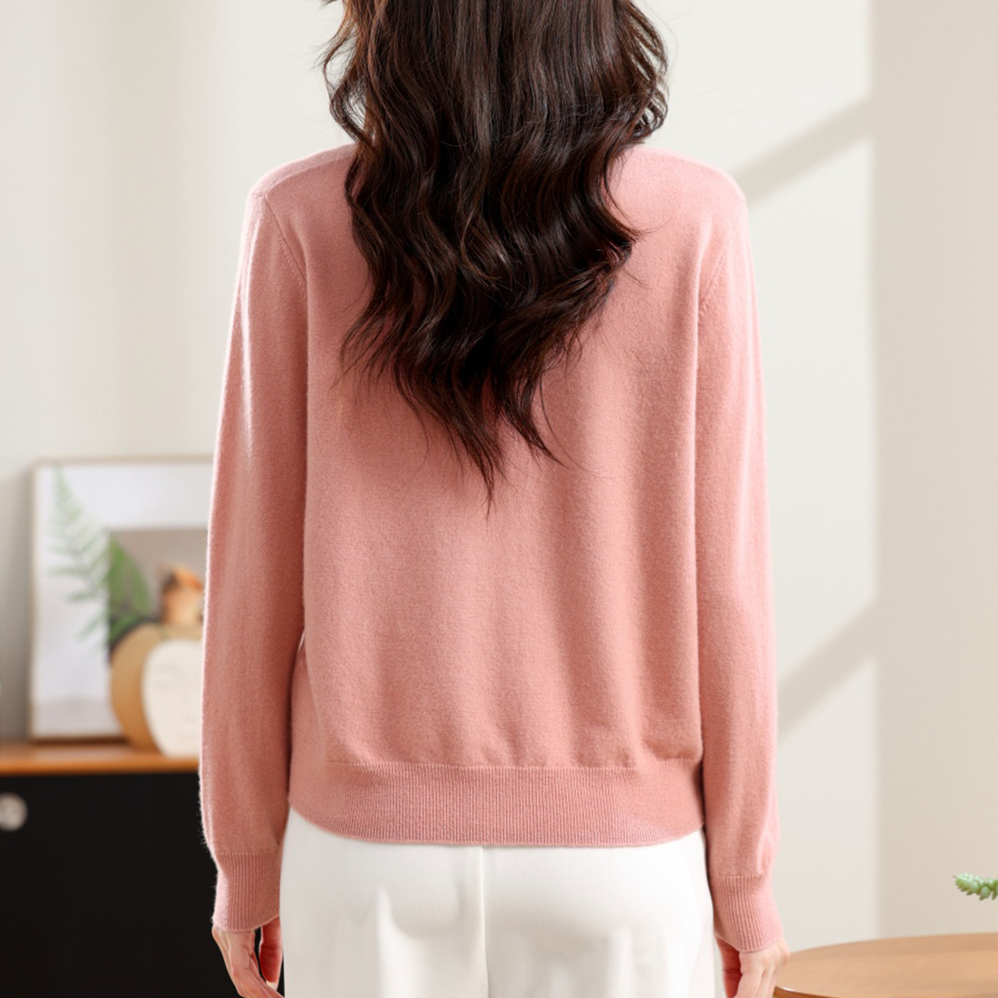 2026新款女装宽松针织开衫纯棉春秋外套纯色百搭圆领毛衣针织衫潮