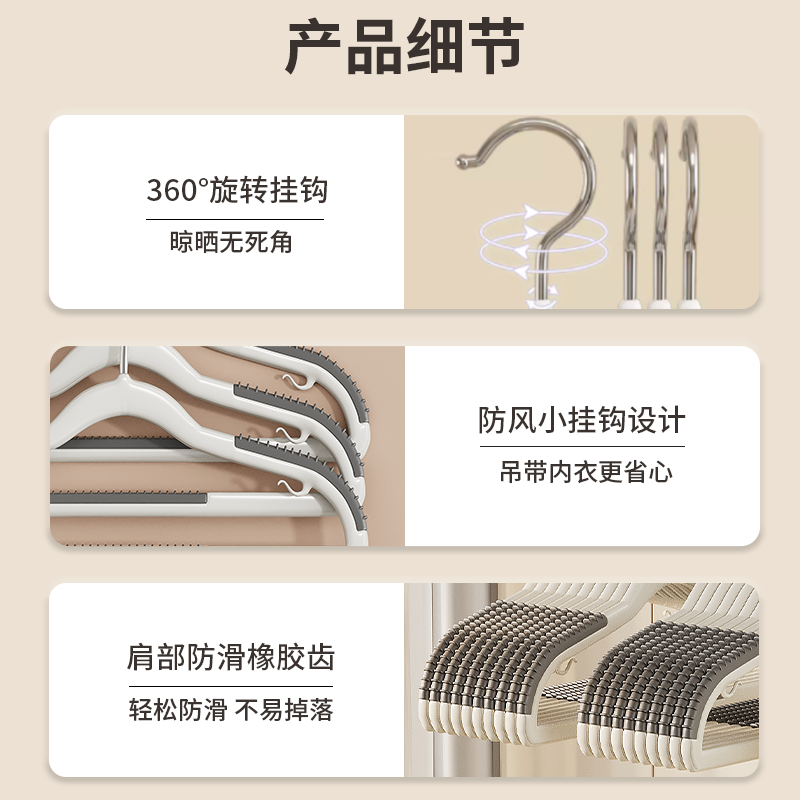 衣架家用挂衣晾衣架无痕防滑晾衣撑成年人加粗宿舍学生晾大衣服架
