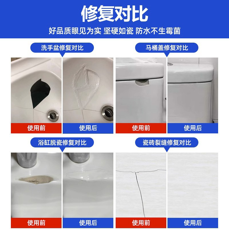陶瓷修补膏无痕强力防水粘洗手盆裂缝专用修补剂沾瓷器面盆裂纹洗脸盆马桶瓷砖破损修补胶水修复高强度快干