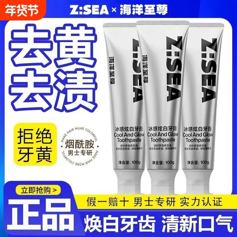 海洋至尊冰感炫白牙膏益生菌清新去烟渍去黄牙齿正品口腔牙周抑菌