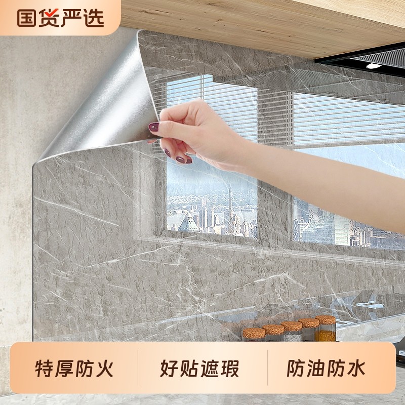 厨房墙面防油贴纸自粘防火耐高温大理石灶台面防水防潮墙贴墙壁纸