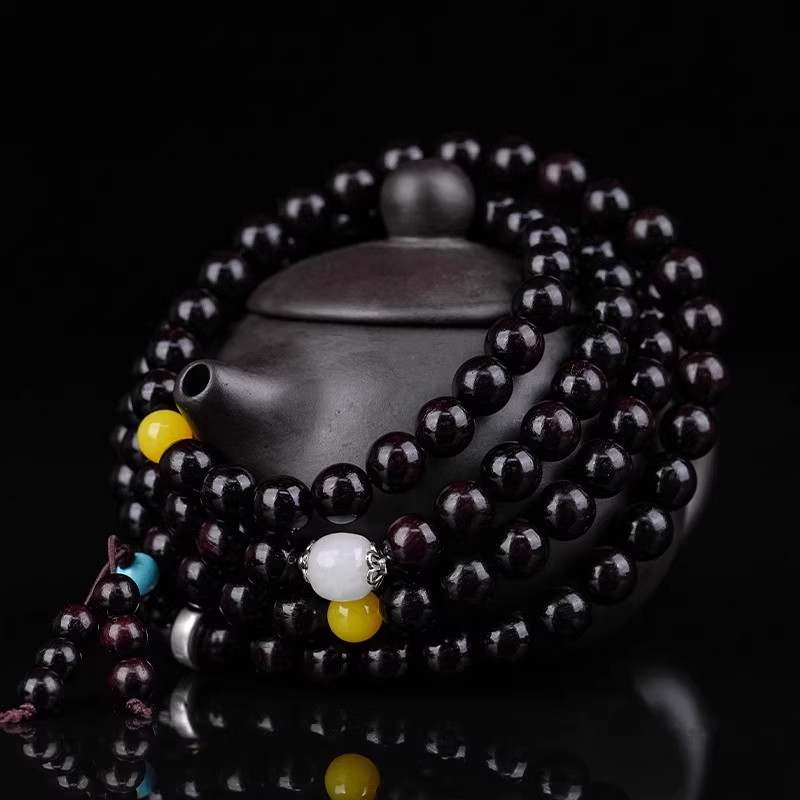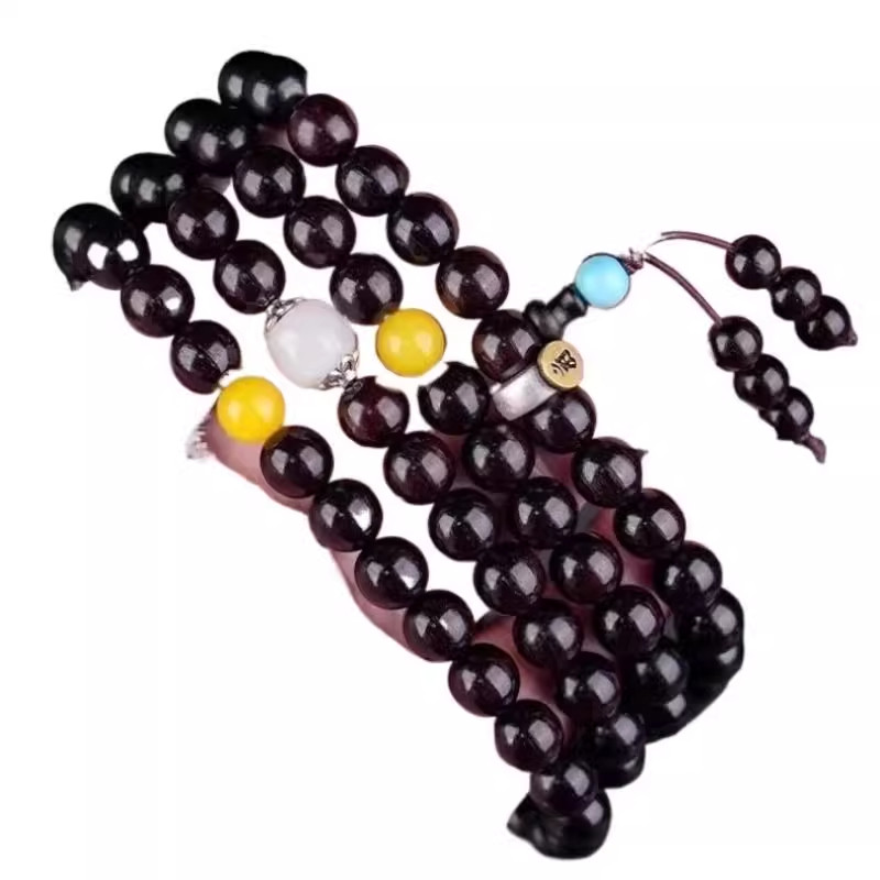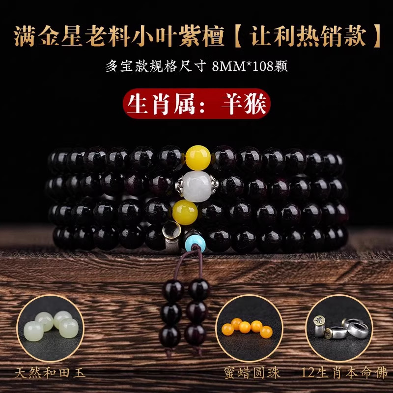 印度小叶紫檀念珠手串108颗佛珠男女手链满金星老料黑檀蜜蜡多圈