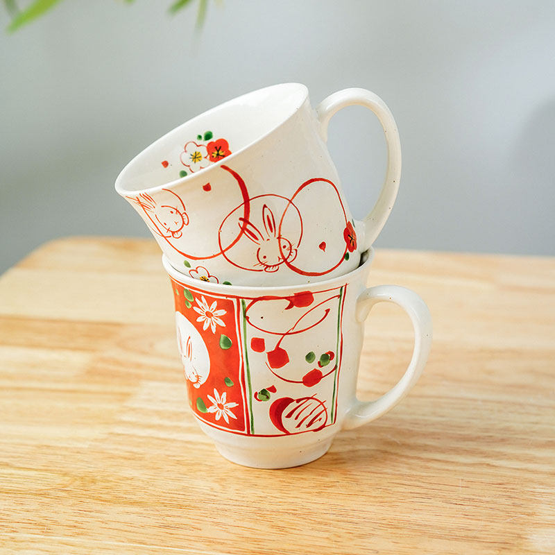 美浓烧日本进口手绘精致陶瓷马克杯水杯家用下午茶釉下彩咖啡茶杯