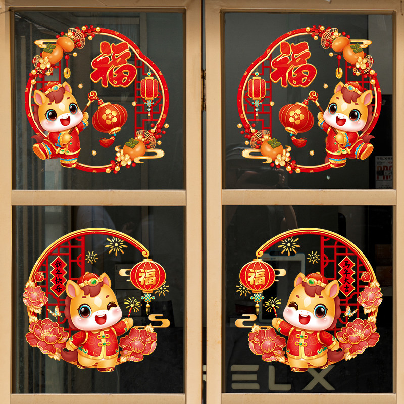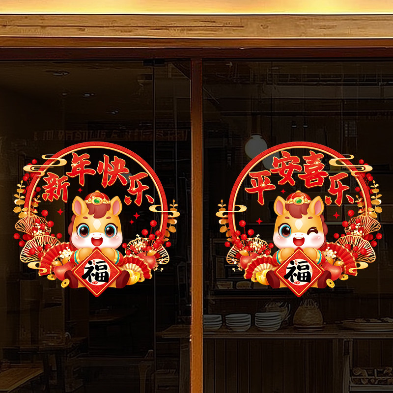 2026新年窗花马年装饰新款玻璃门贴纸静电橱窗贴春节氛围布置贴画