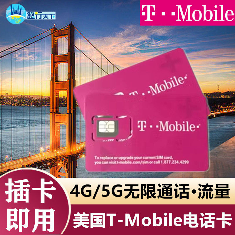 美国电话卡T-Mobile 4G/5G高速上网卡无限流量通话5-90天sim卡