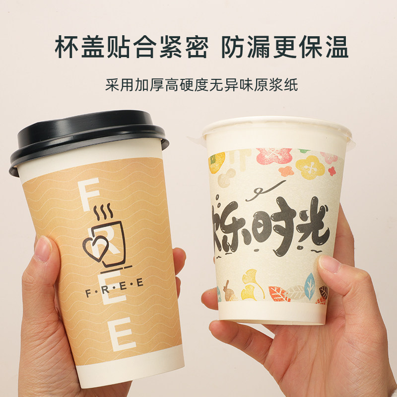 一次性豆浆纸杯商用加厚带盖早餐专用打包稀饭杯杯子食品级防烫