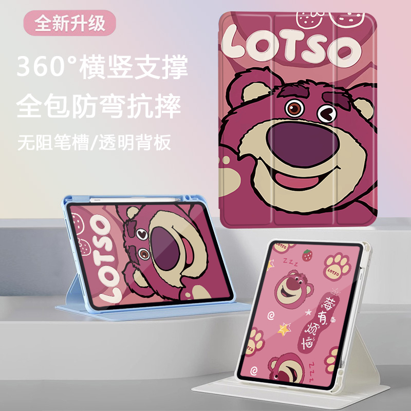 大眉粉熊适用ipad5/6平板壳9.7寸pro11苹果2022款带支架360°旋转10.5卡通air5保护套7/8/9硅胶8.3mini6电脑5
