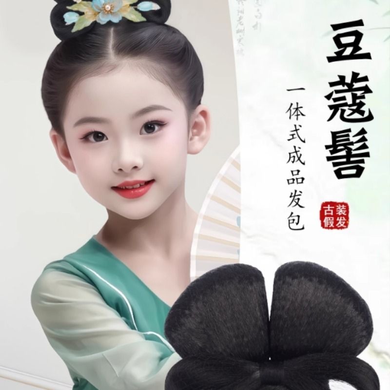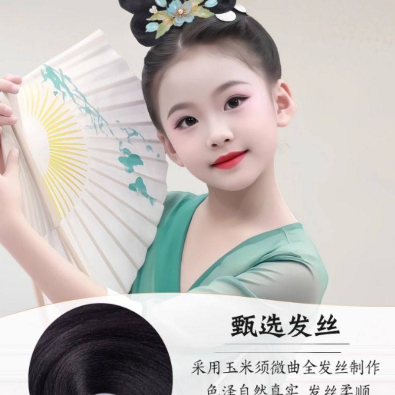 儿童汉服假发包一体式古装古典舞表演造型古风盘发发髻头饰垫发女