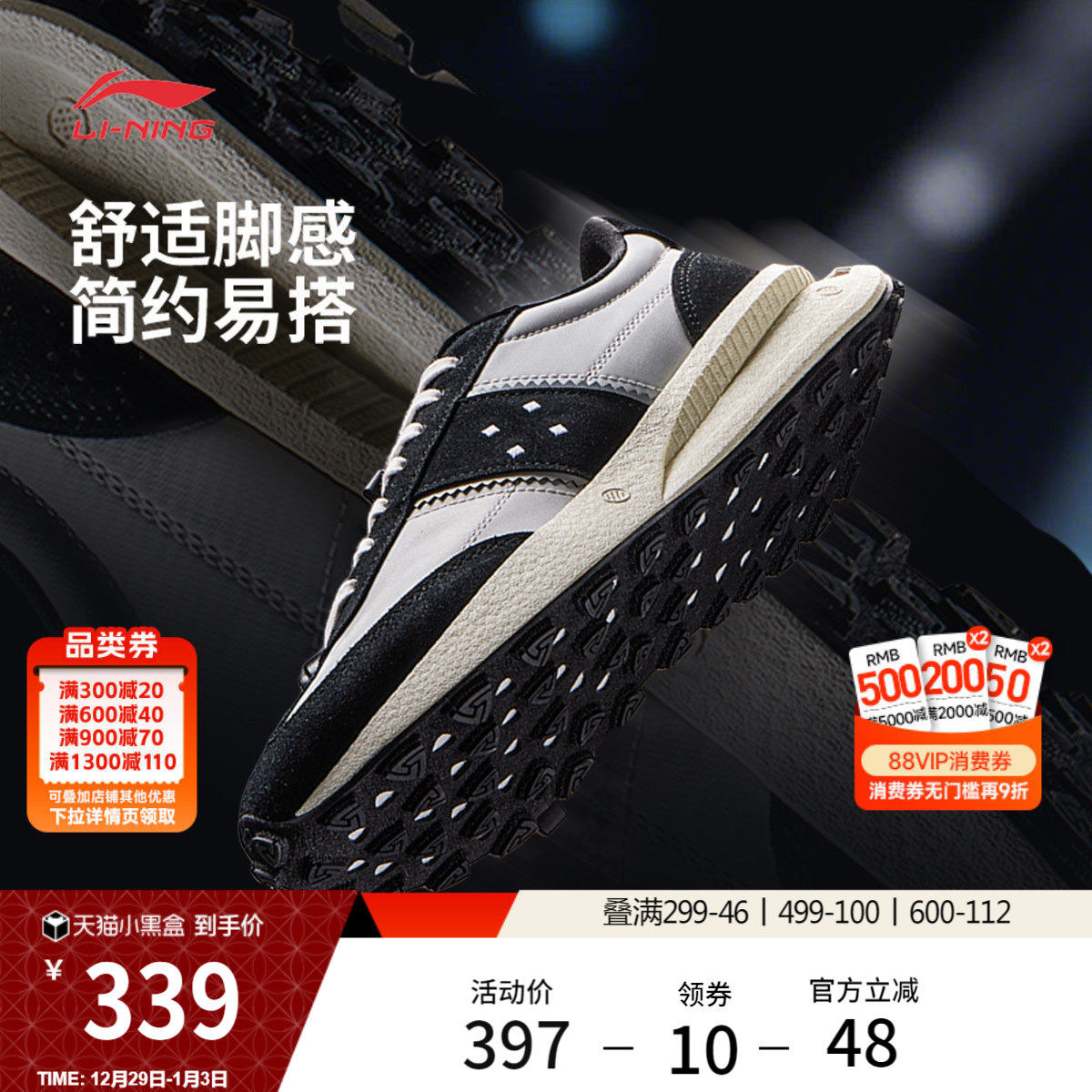 李宁小白鞋 | 板鞋秋冬新款男鞋低帮经典软底轻便学生运动鞋男款