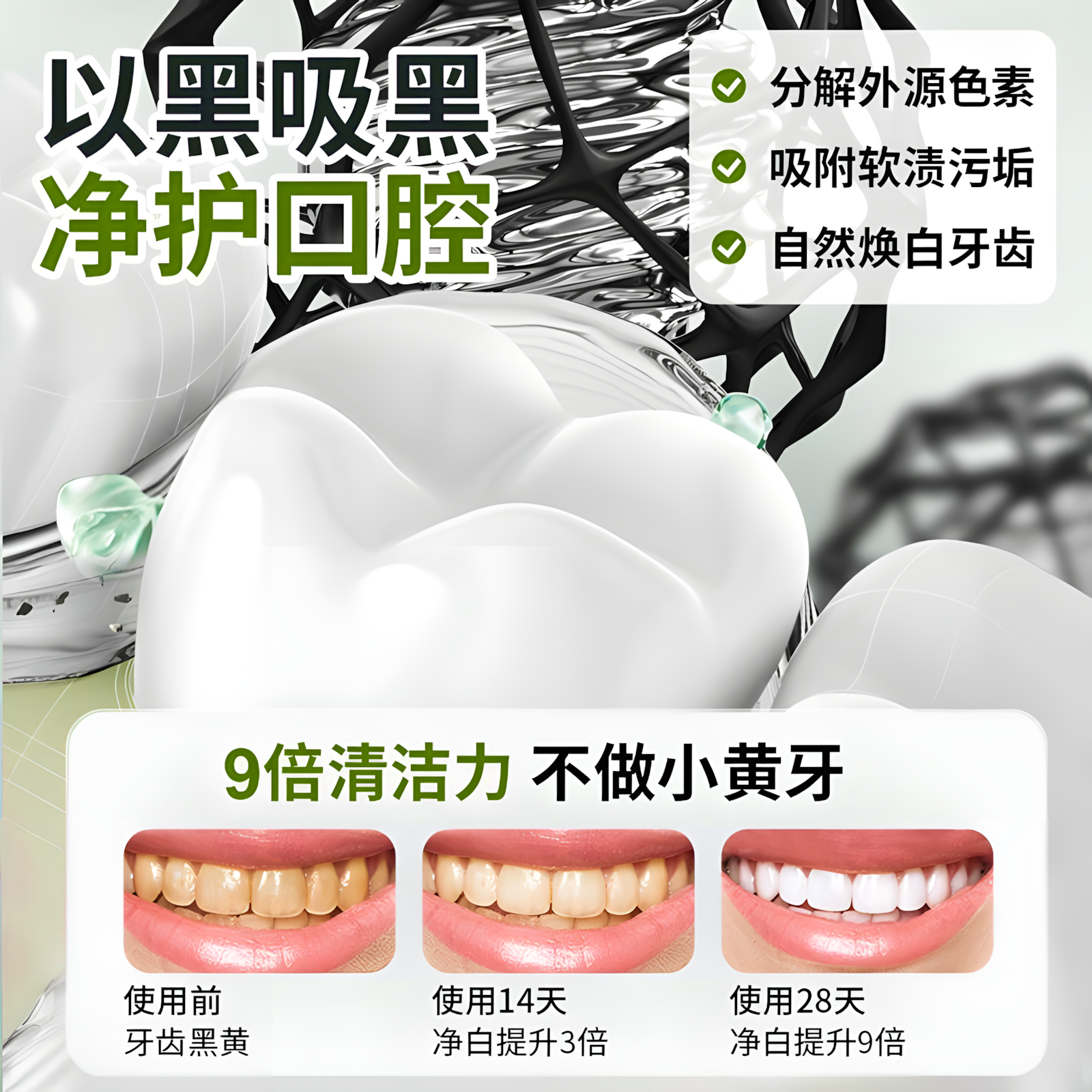 竹炭牙膏男士专用去黄去口臭美白速效女成人热销榜第一名官方正品