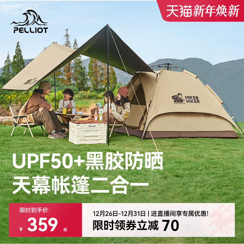 骆驼帐篷户外露营野营过夜便携式折叠全自动全套装备加厚黑胶新款
