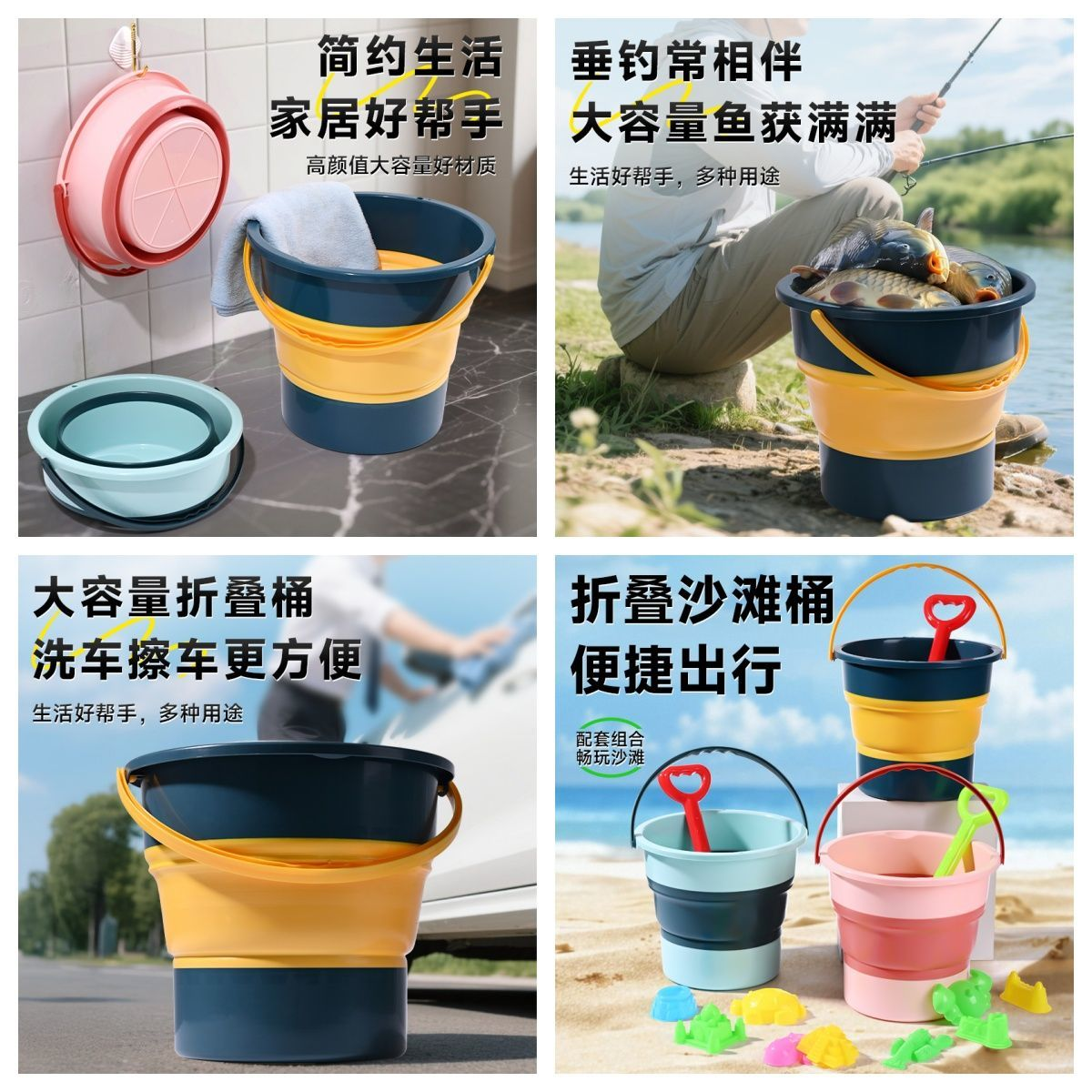 折叠水桶户外钓鱼桶大小号车载旅行洗车桶家用便携式加厚塑料手提