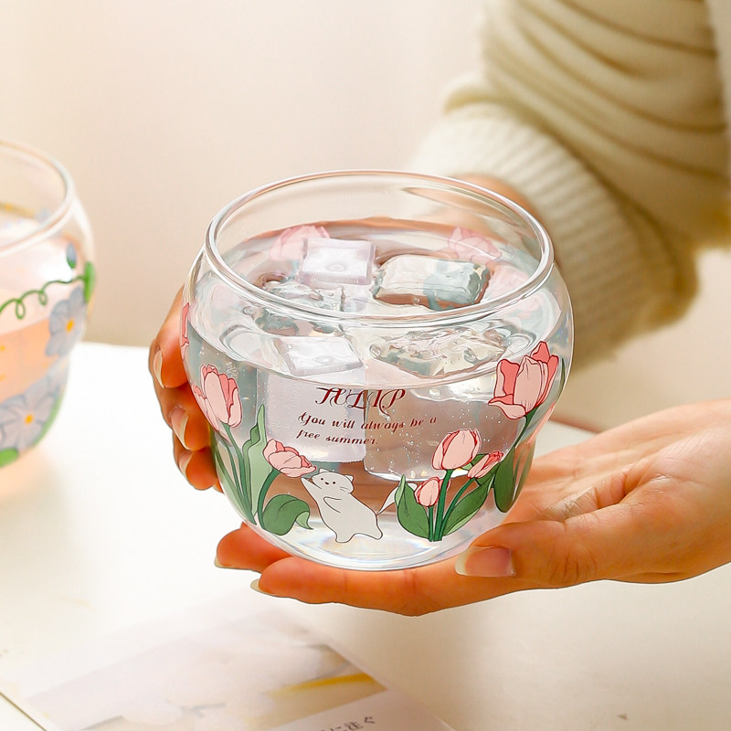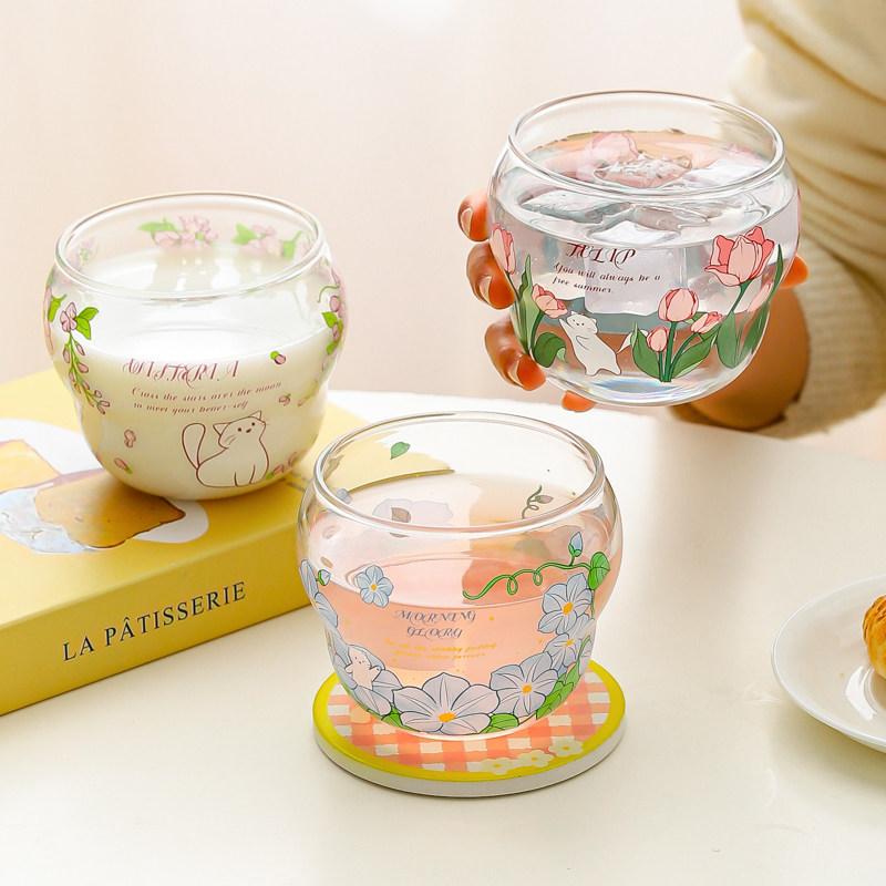 a沁楠枝玻璃杯韩版ins创意玻璃杯喝水杯子办公室学生吸管杯泡茶杯