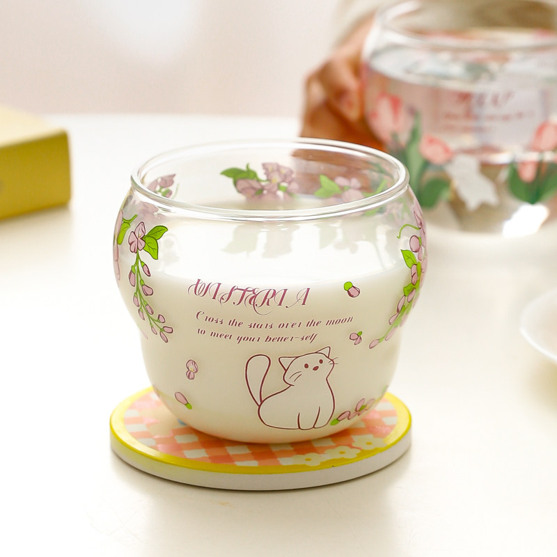 可爱卡通玻璃杯大容量水杯2024新款女杯子办公室家用牛奶杯奶茶杯