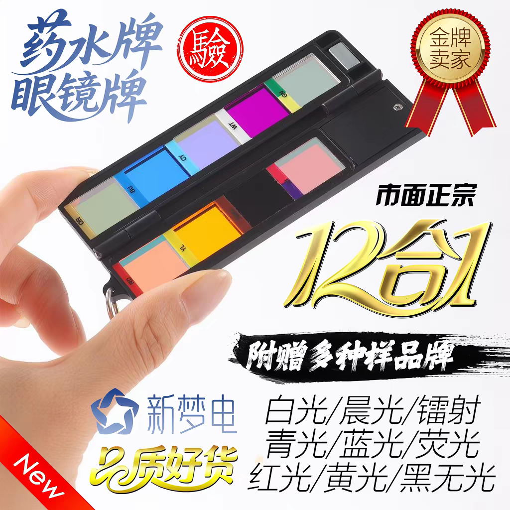新款九合一检测镜片钥匙扣白光青光紫光检测红光检测镜片