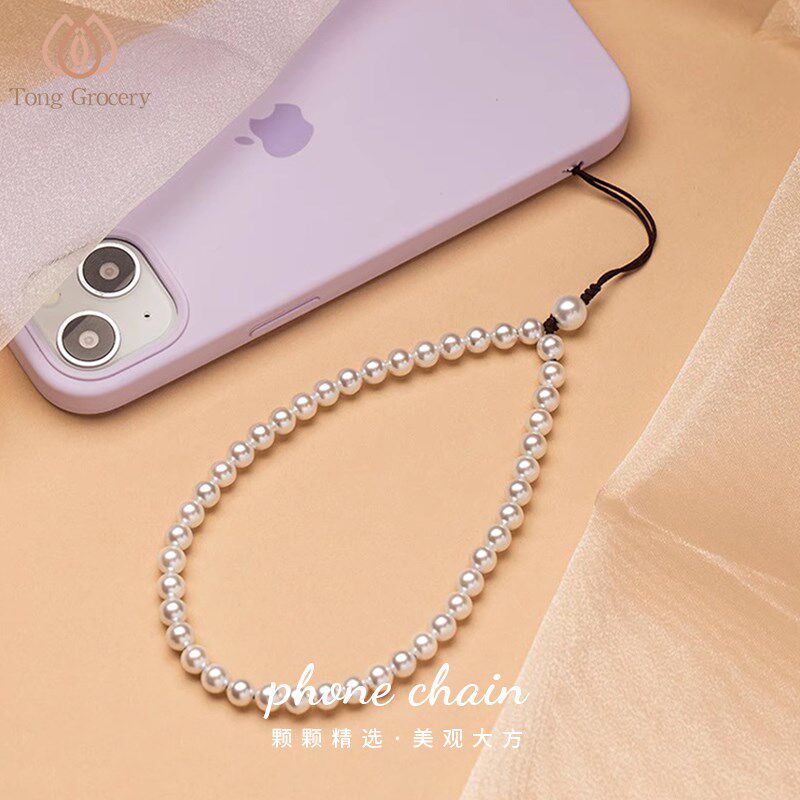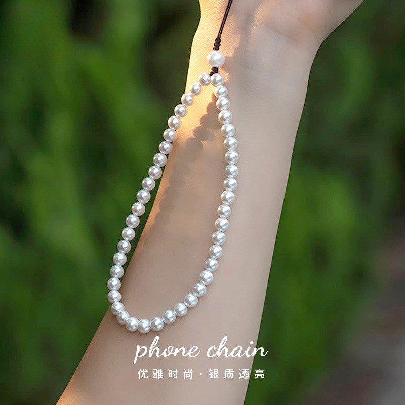 素纯天然淡水白珍珠简约手机挂链手腕防丢挂绳挂件吊坠手机壳挂