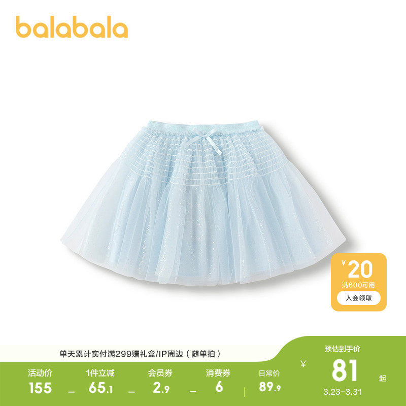 巴拉巴拉童装女童短裙网纱蓬蓬裙春季裙子甜美蝴蝶结可爱公主洋气
