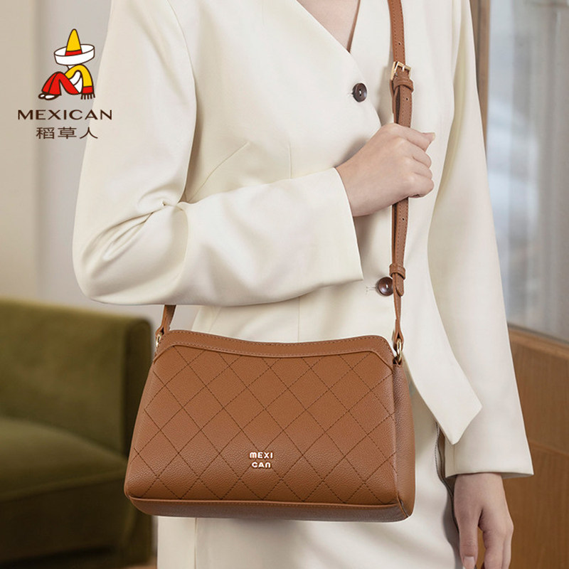 稻草人包包菱格休闲单肩斜挎包2026新款潮百搭时尚单肩女士小方包