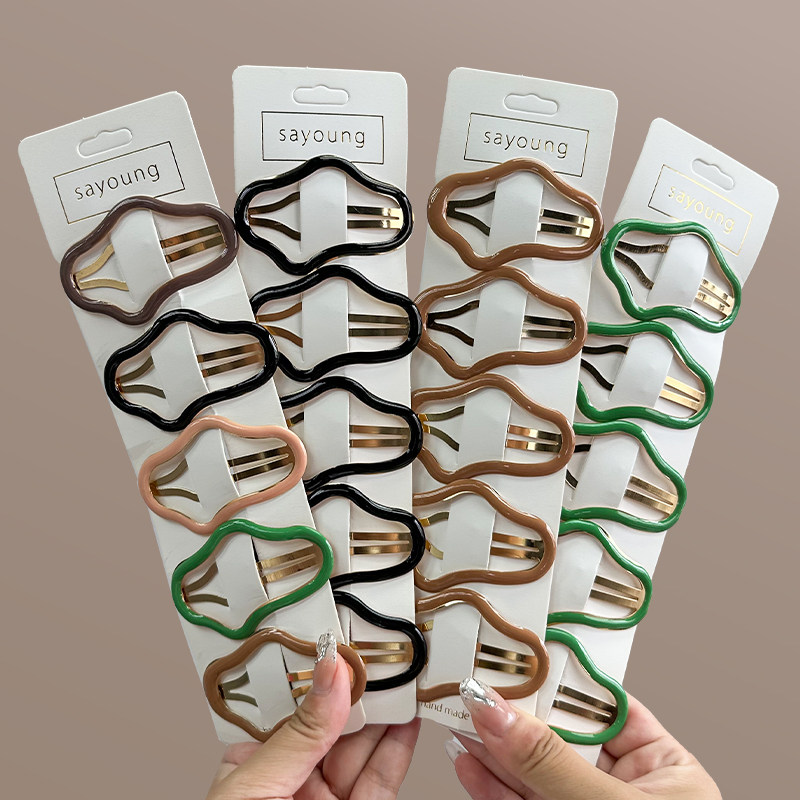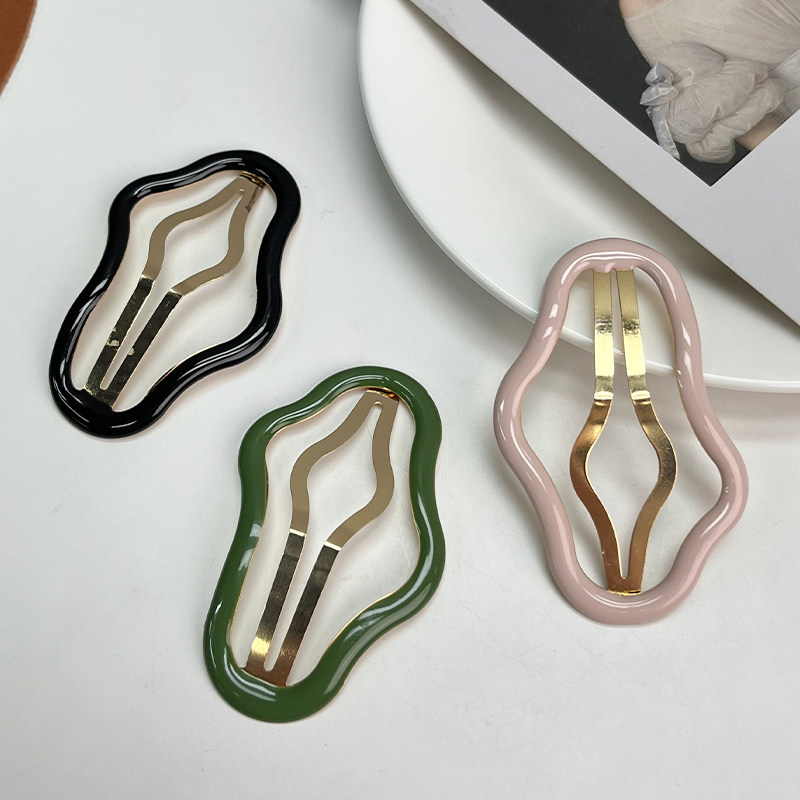少女小金属刘海碎发一字鸭嘴造型侧边美妆发夹女发卡黑色夹子发饰