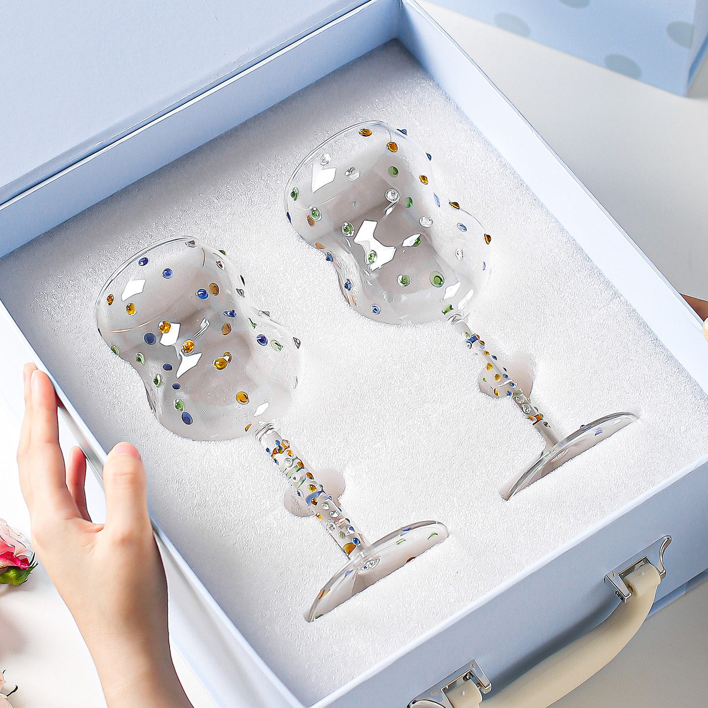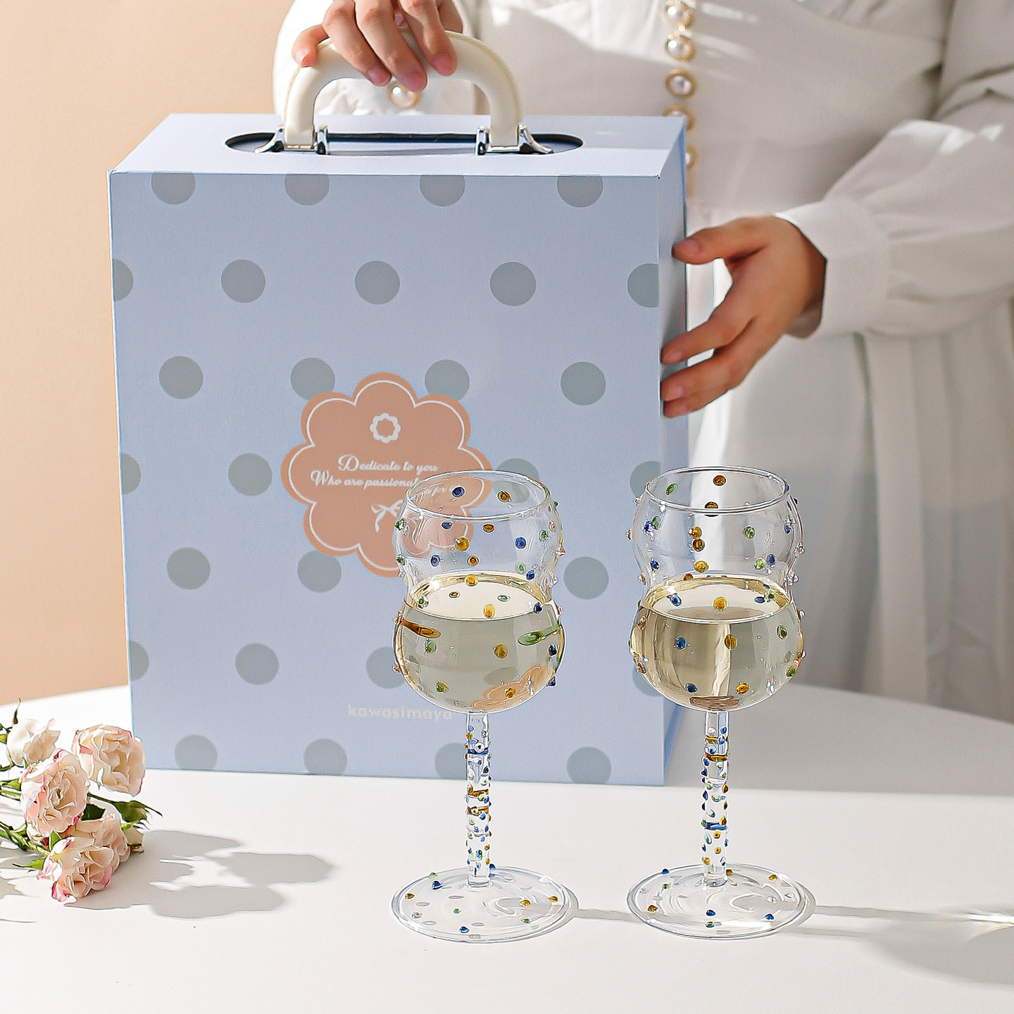 川岛屋红酒杯2个一对礼盒装高脚杯结婚新婚订婚搬家乔迁新居礼物