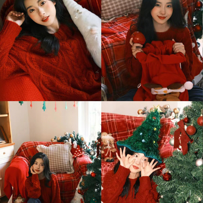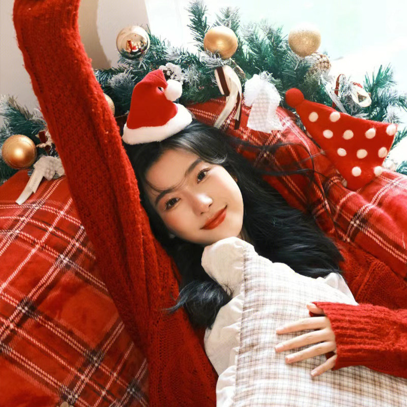 圣诞网红格子背景布拍照桌布景ins雪花红色绿色节日创意儿童幕布高级宝宝写真宠物写真摄影道具直播间装饰