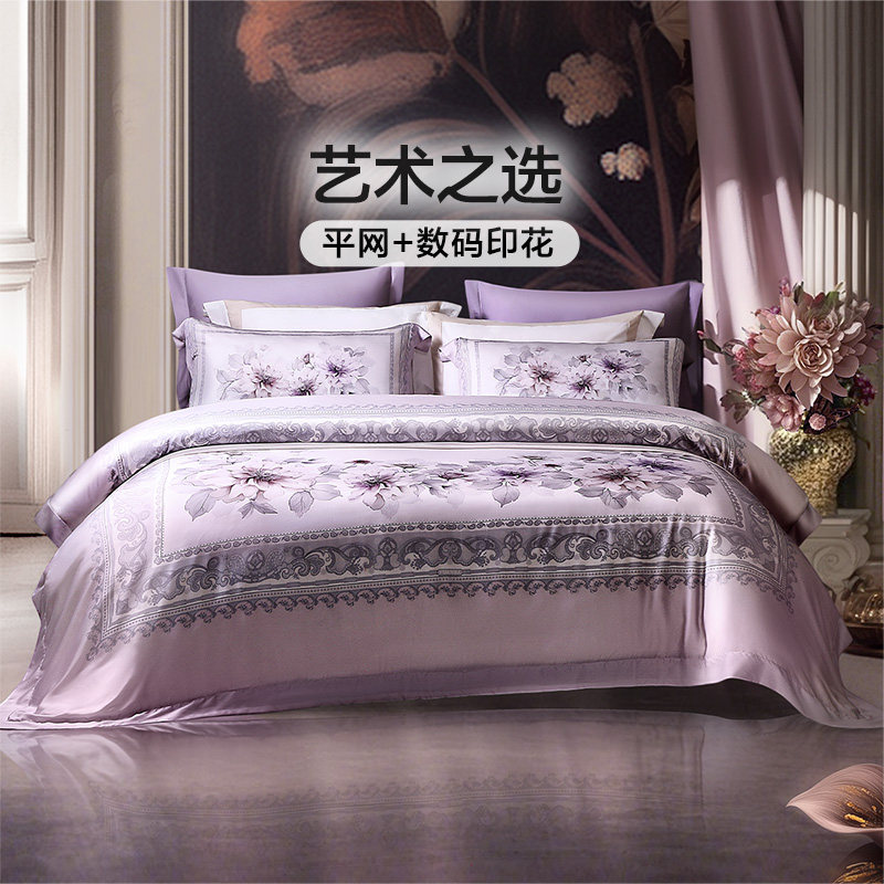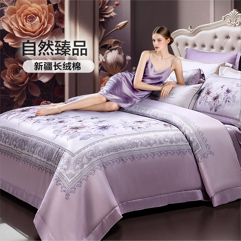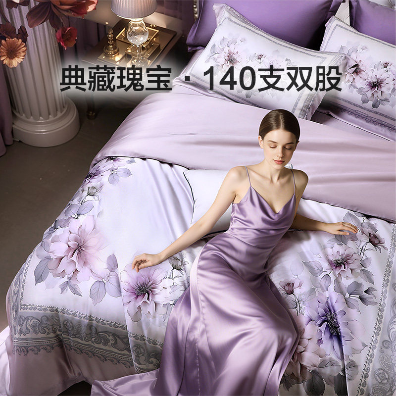 富安娜家纺140支长绒棉床上四件套轻奢柔软裸睡纯棉全棉床单被套