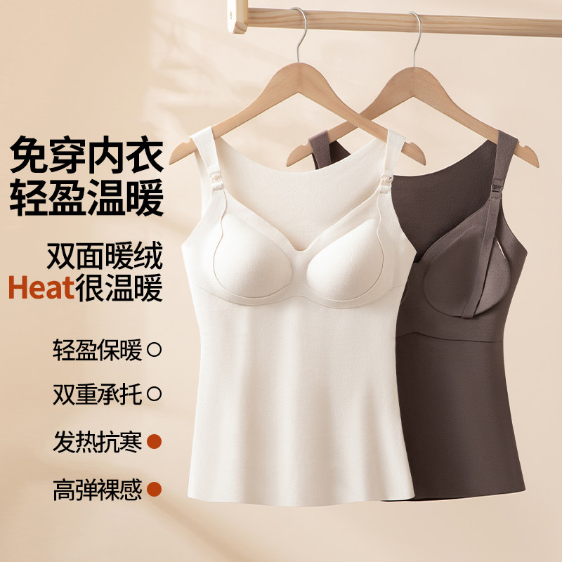 婧麒哺乳背心秋冬双面绒内衣孕妇免穿文胸喂奶可外穿带胸垫吊带女