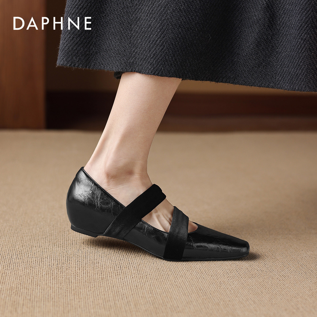 达芙妮黑色单鞋女款2026新款春季法式玛丽珍内增高小皮鞋配裙子秋