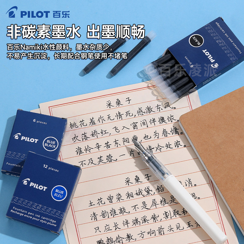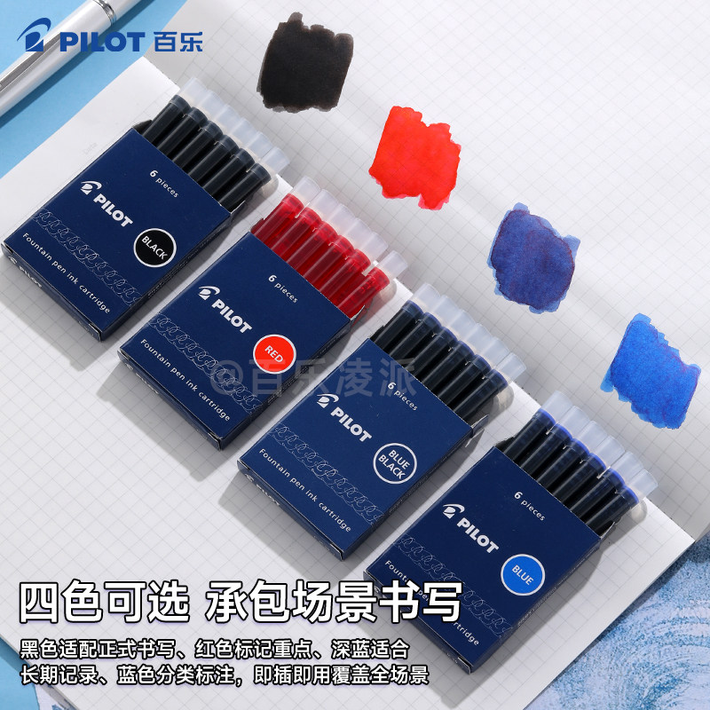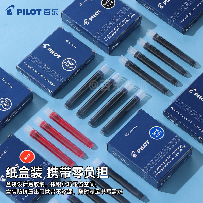 日本PILOT百乐钢笔专用墨囊一次性墨水墨胆IC-50/IC-100黑蓝红色非碳素不堵笔笑脸/贵妃/78G/88G补充液便携装