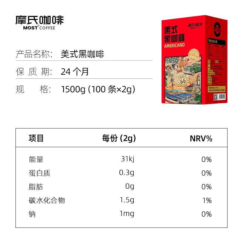 摩氏咖啡美式黑咖啡无蔗糖无脂提神冷萃健身纯苦速溶咖啡粉 100条