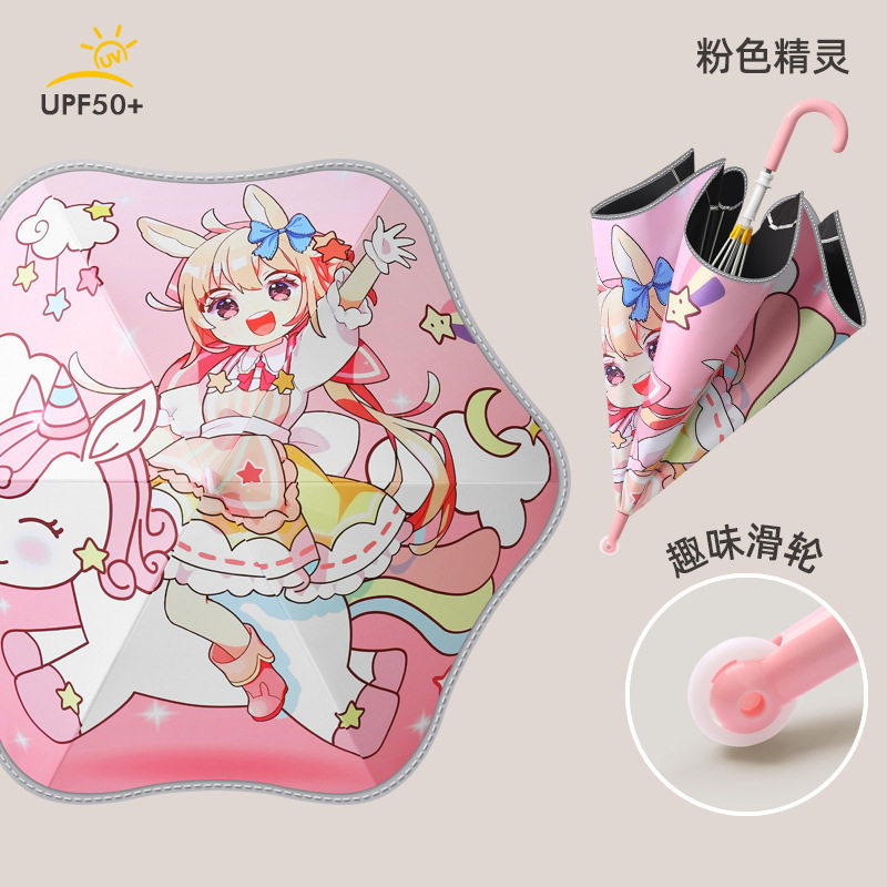 滑轮圆角上学男女幼童儿童雨伞宝宝幼儿园女孩可爱晴雨伞长柄手动