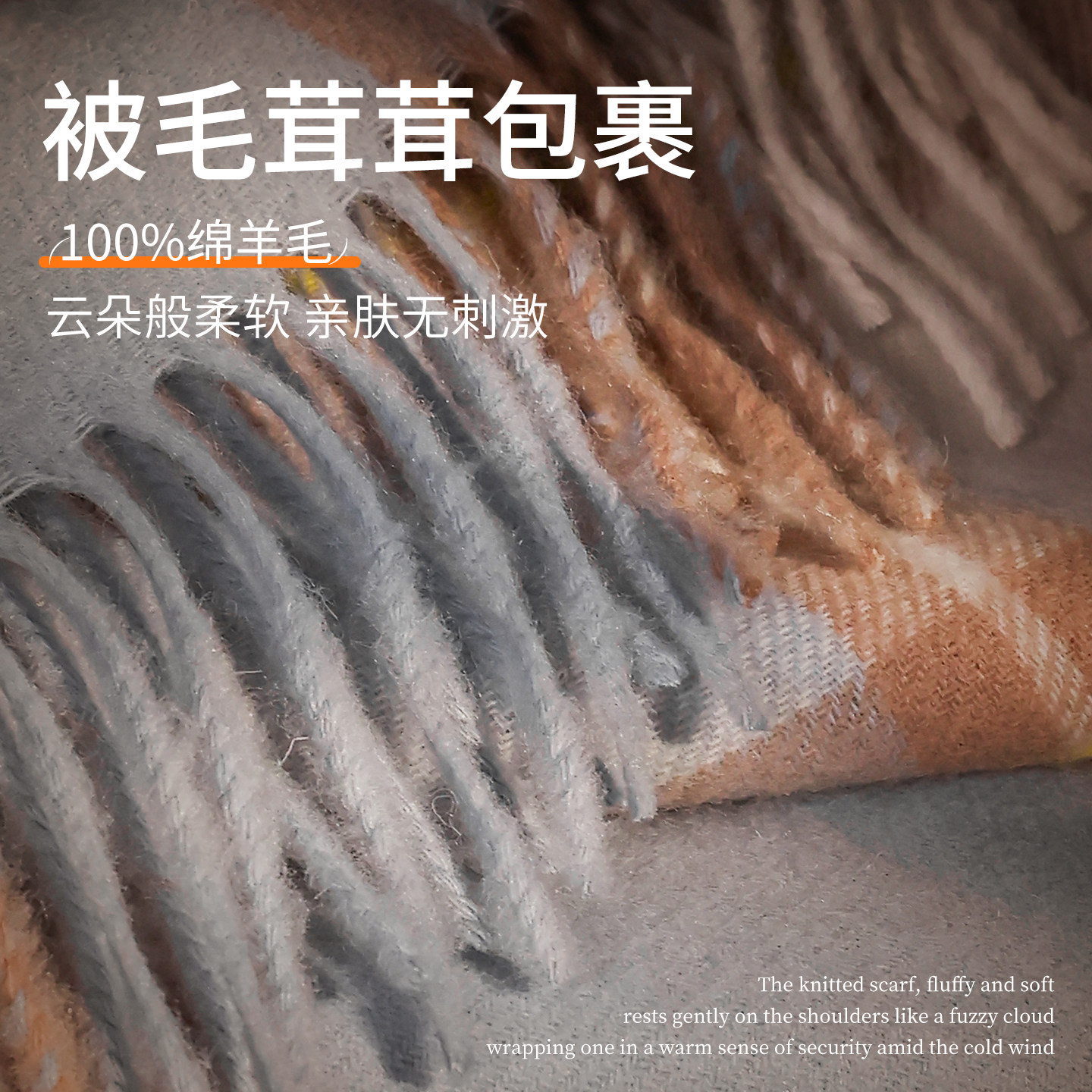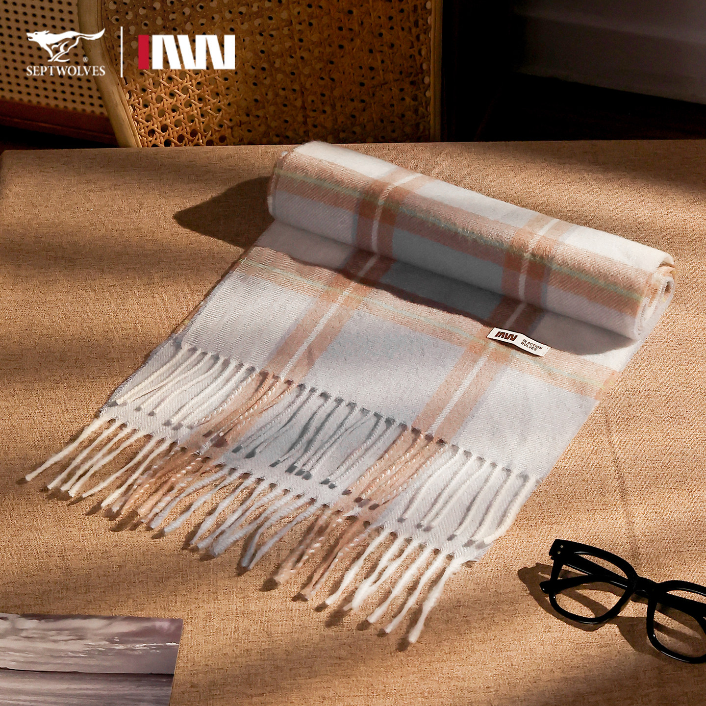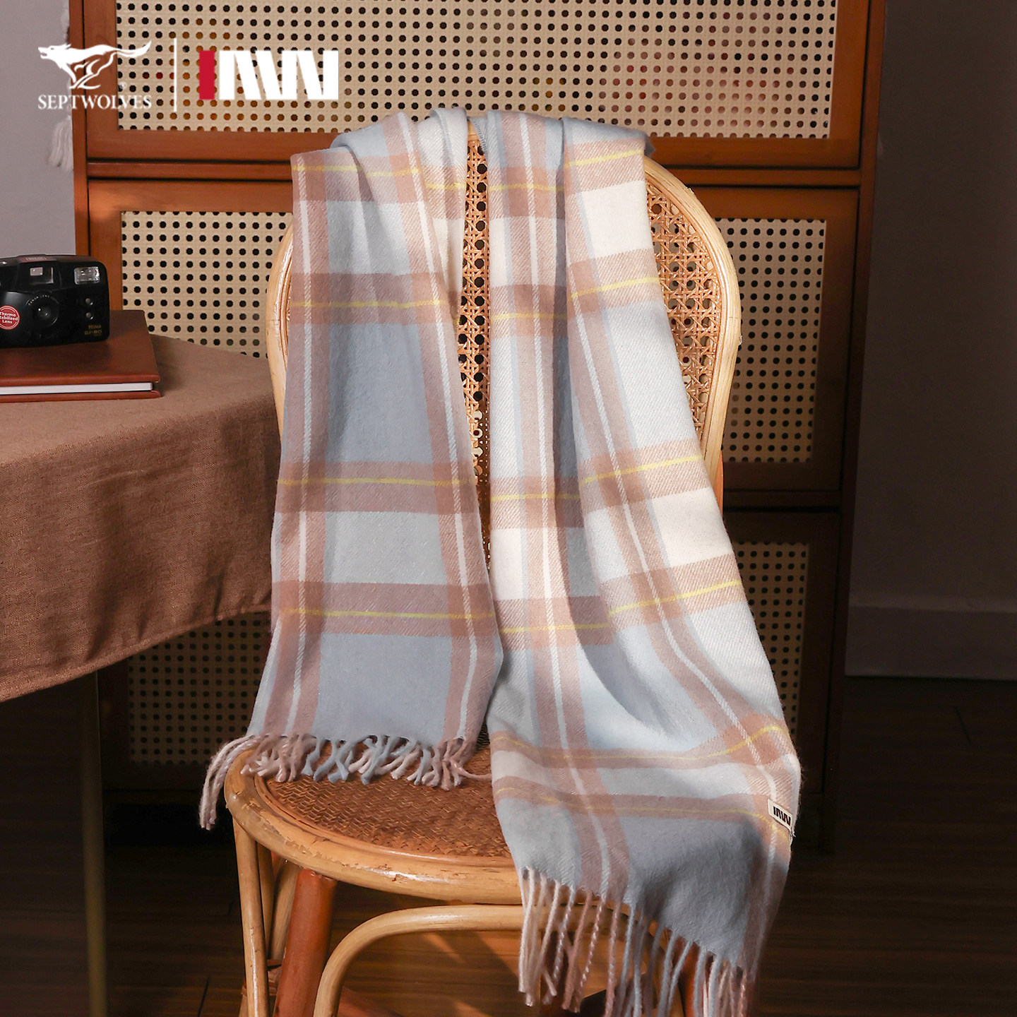 七匹狼100%纯羊毛女士围巾格纹经典氛围感2026年春季新款披肩两用