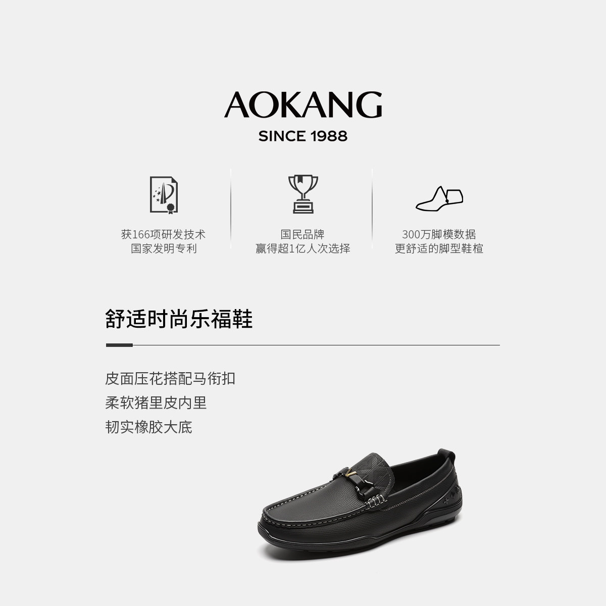 奥康男鞋 春秋商务休闲皮鞋舒适软底驾车鞋一脚蹬套脚懒人豆豆鞋