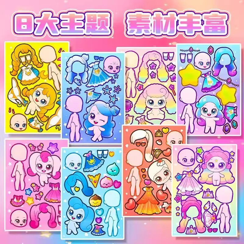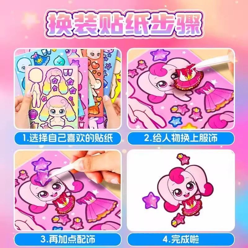 奇妙萌可换装贴纸女孩公主周边玩具儿童手工diy自粘贴手账装饰画