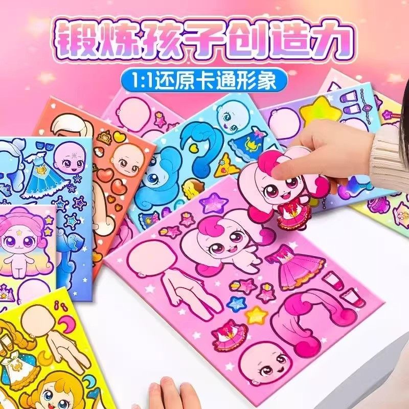 萌崽新款学霸学渣果冻贴纸安静书儿童免裁剪手工粘贴DIY女孩趣味玩具