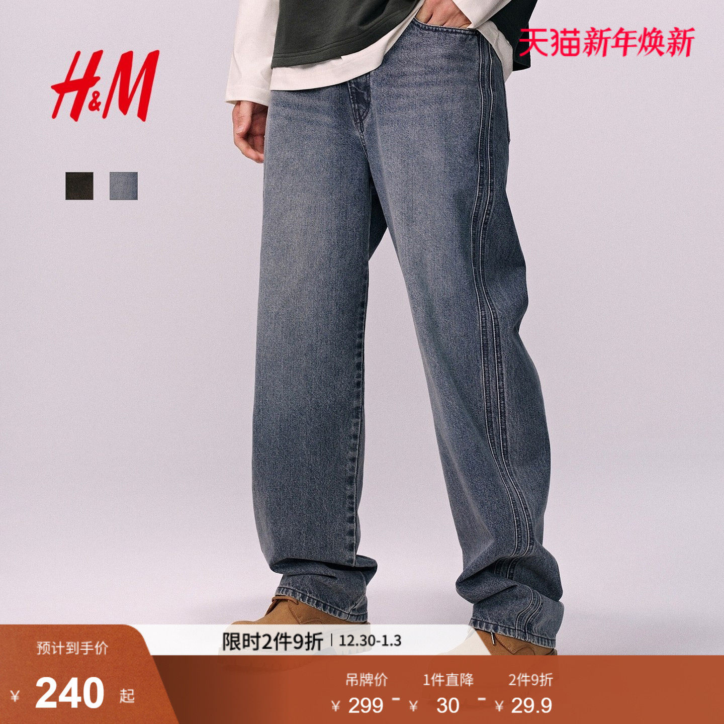 HM男装牛仔裤2025年冬季新款时尚通勤简约潮流宽松牛仔裤1300712