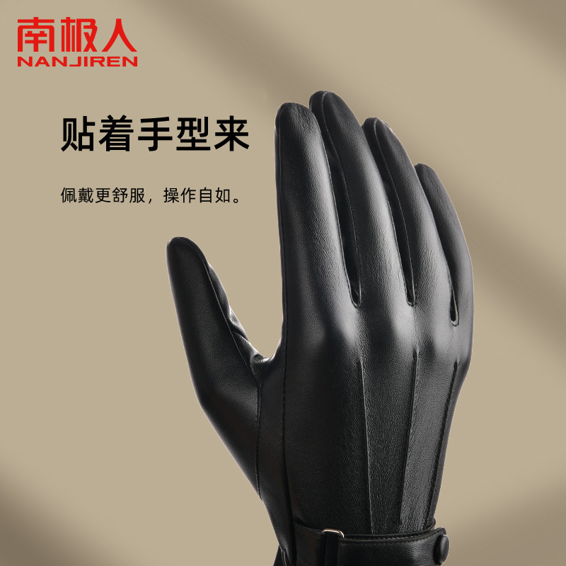 南极人皮手套男士冬季加绒加厚保暖开车骑行防寒防风触屏防水女J