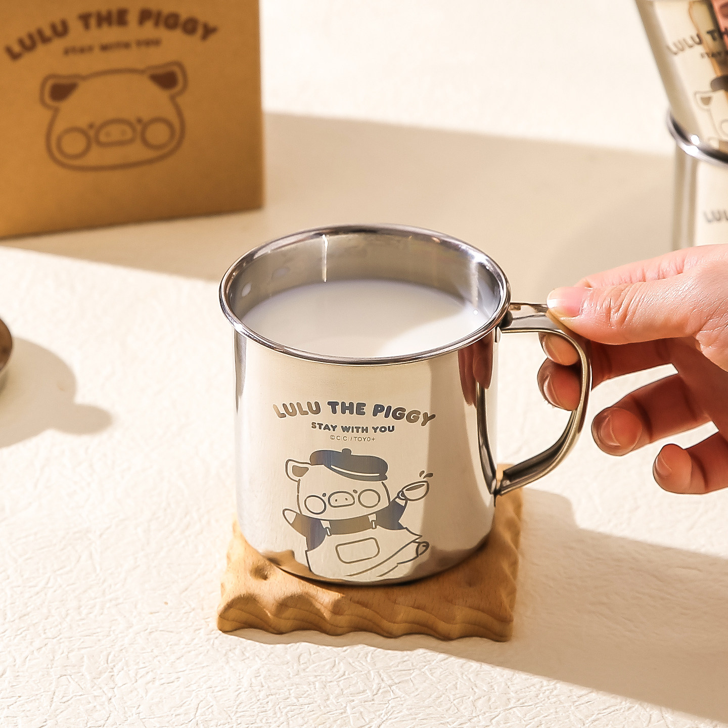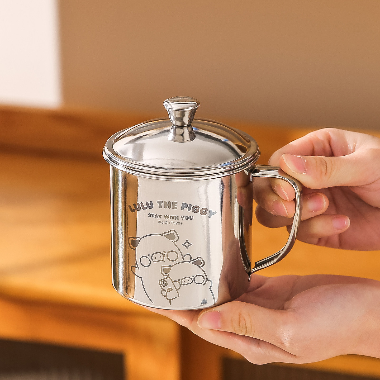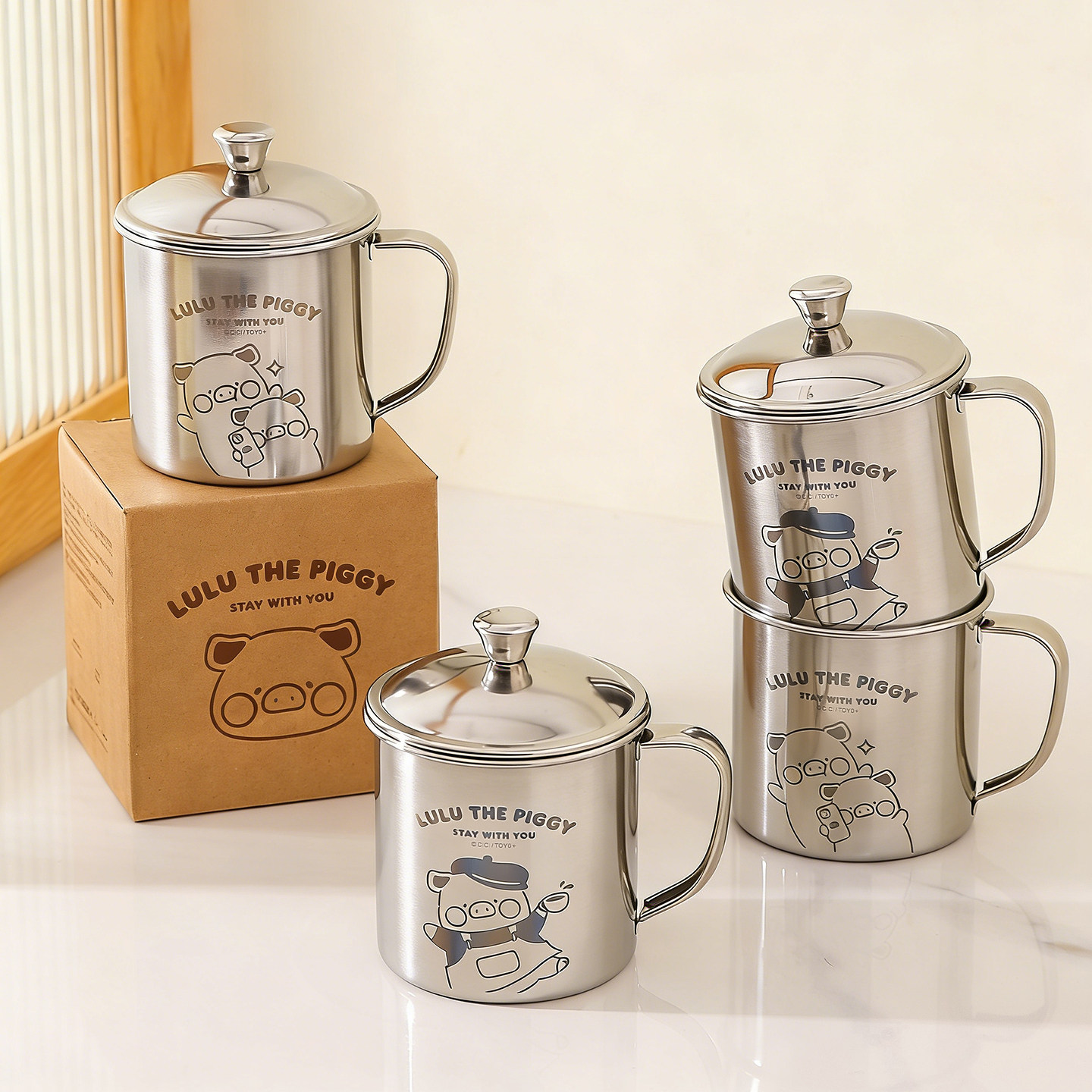 川岛屋&lulu猪联名 不锈钢马克杯儿童牛奶杯子带盖敞口家用喝水杯