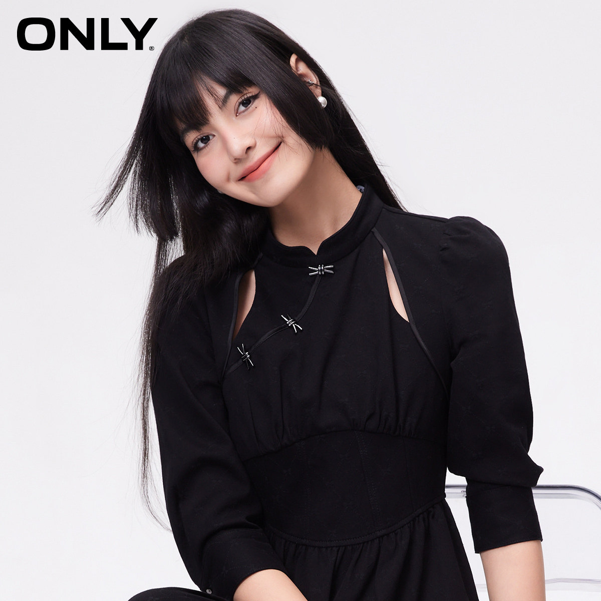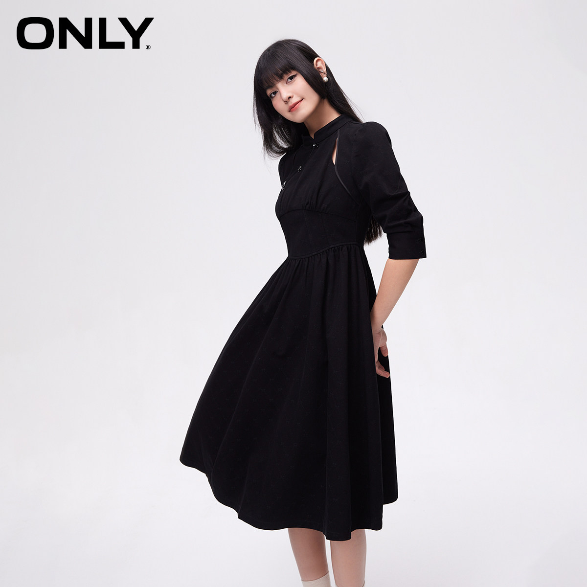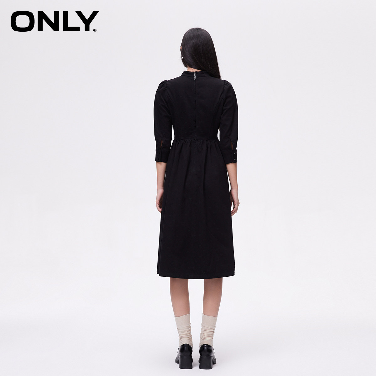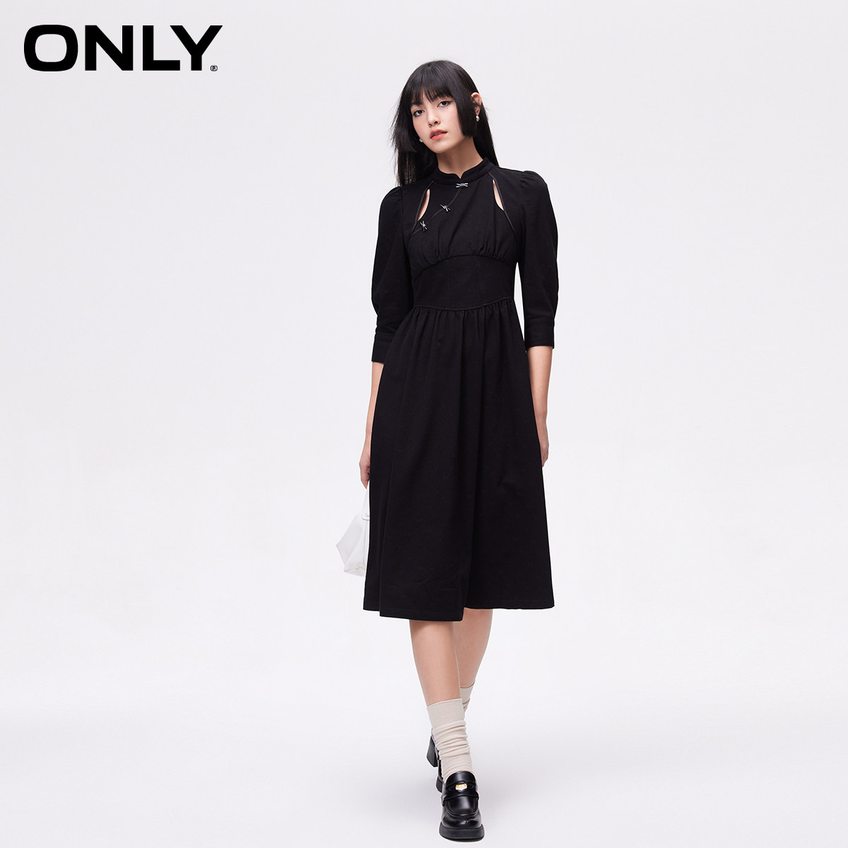 【ONLY奥莱】春季新款都市新中式泡泡袖中长款牛仔连衣裙女
