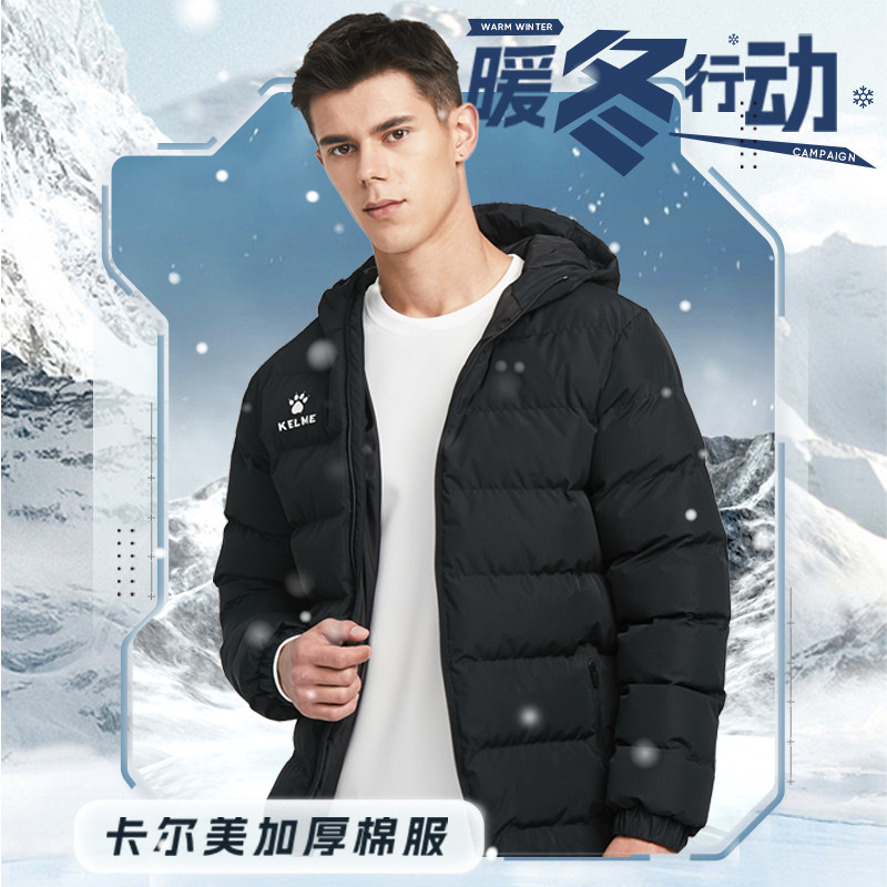 KELME卡尔美 棉服男短款冬季足球训练运动棉衣保暖棉袄加厚外套